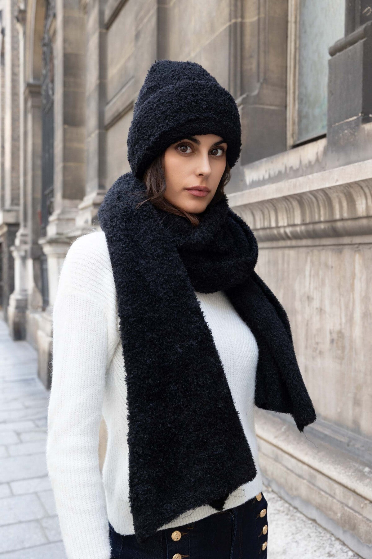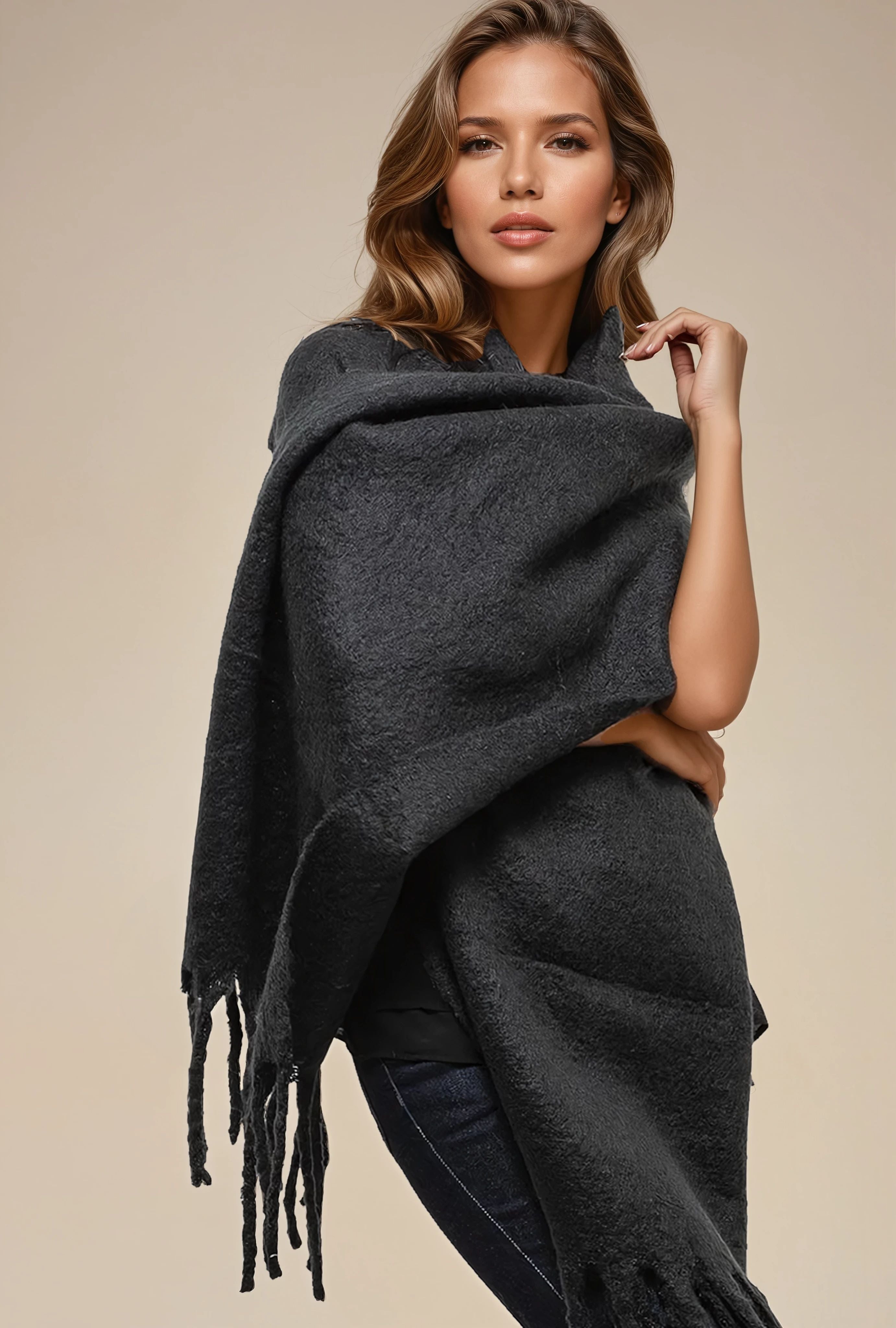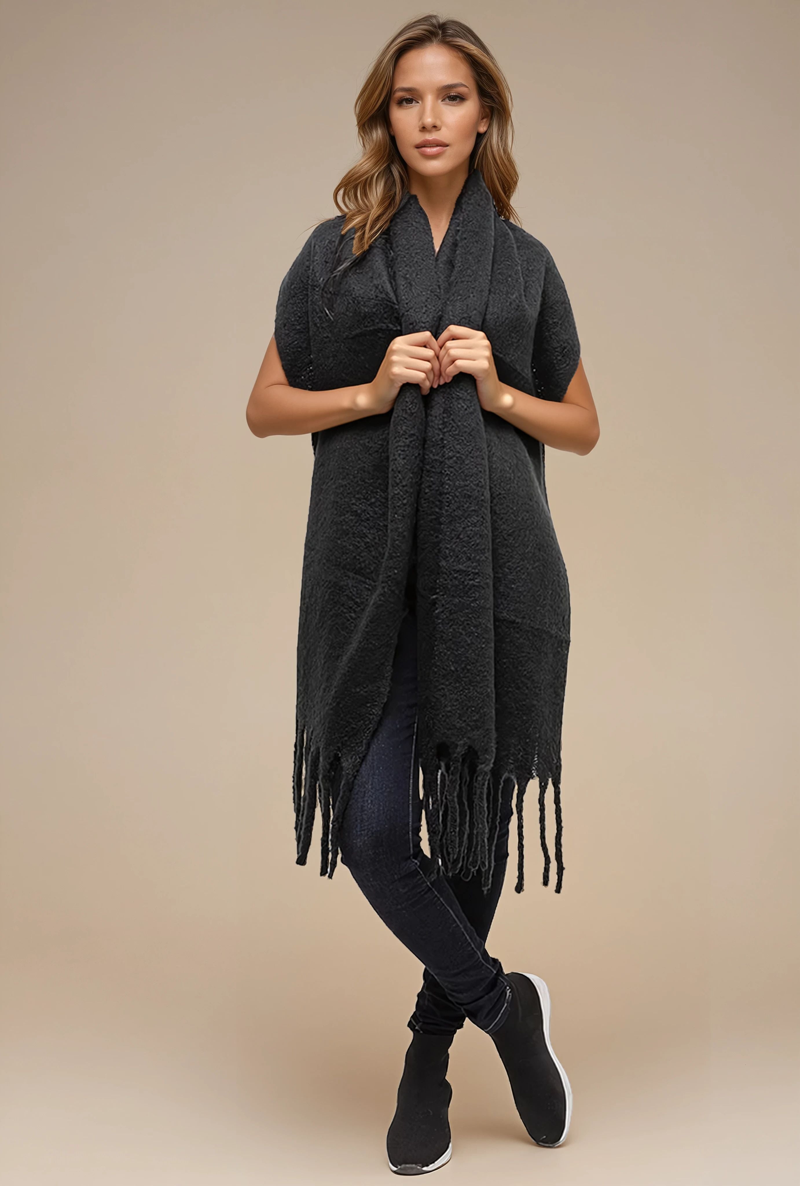 Halsduk stor frans svart