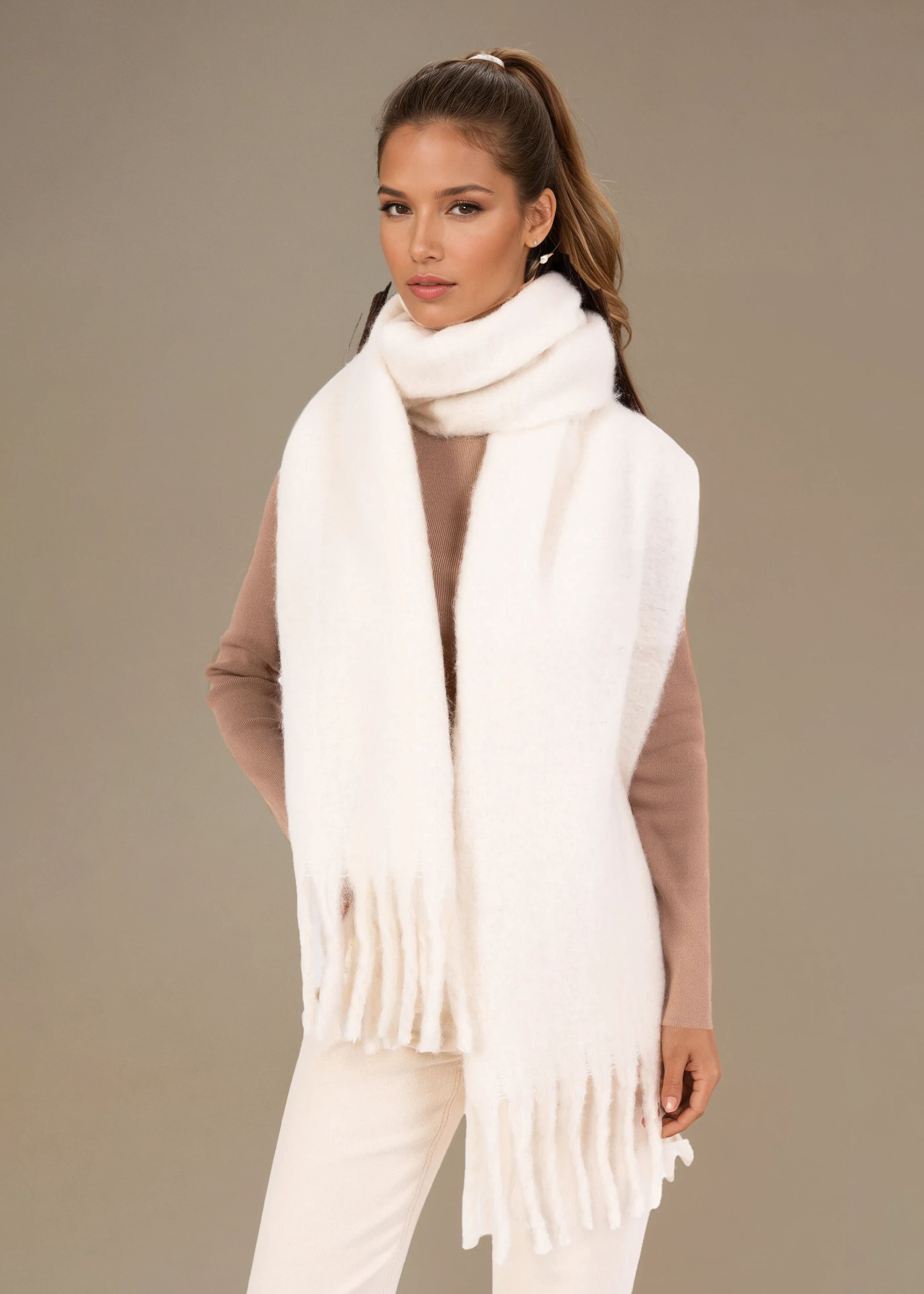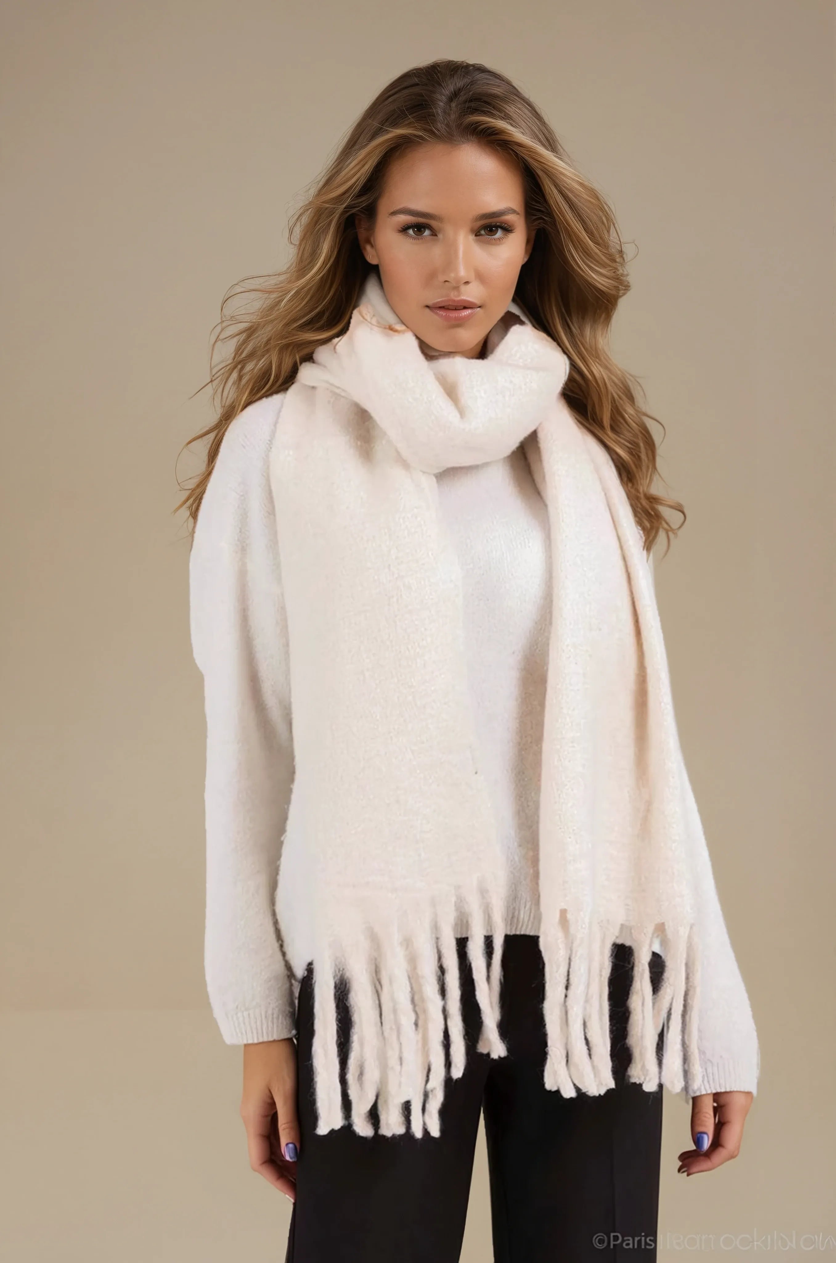 Halsduk stor frans offwhite