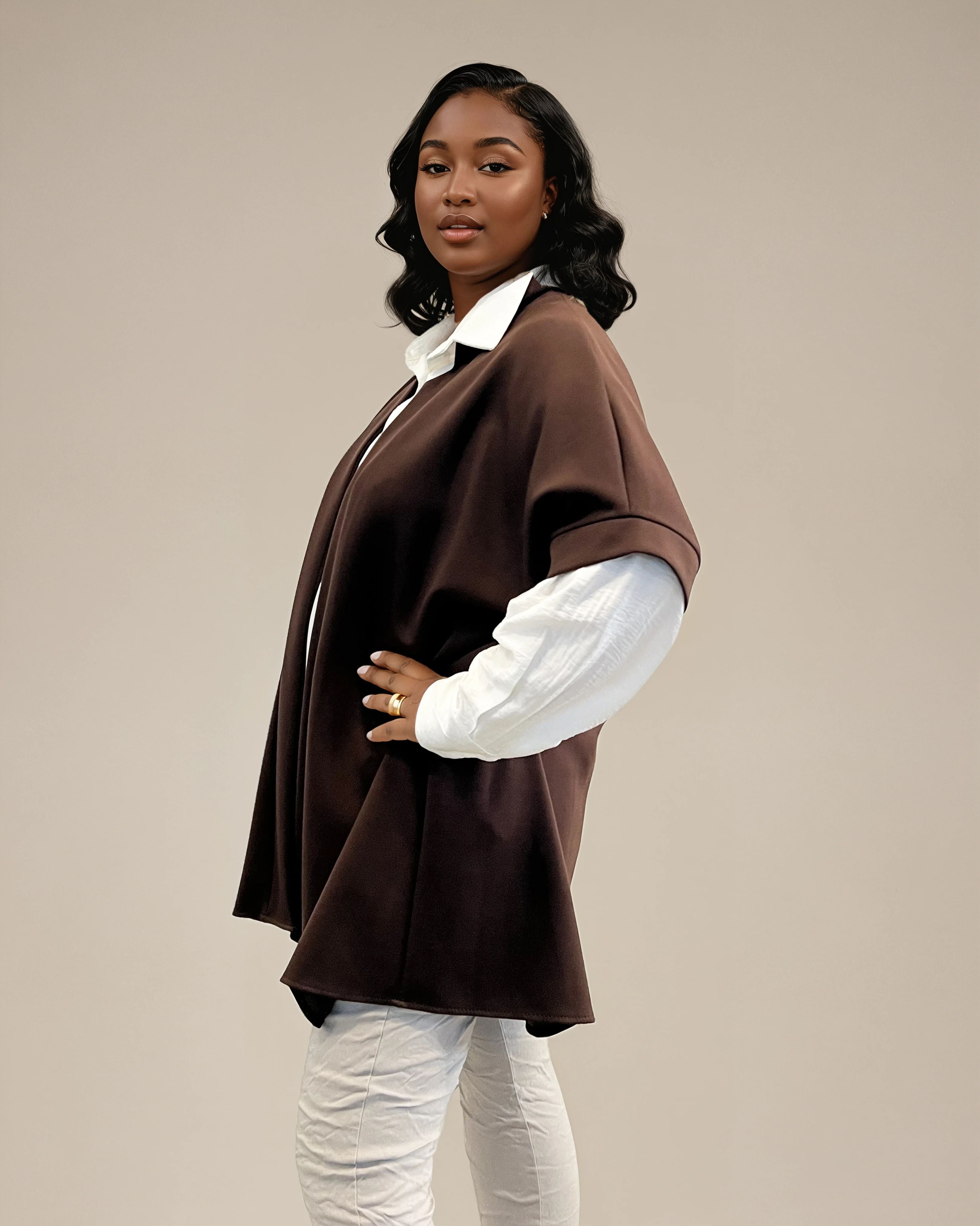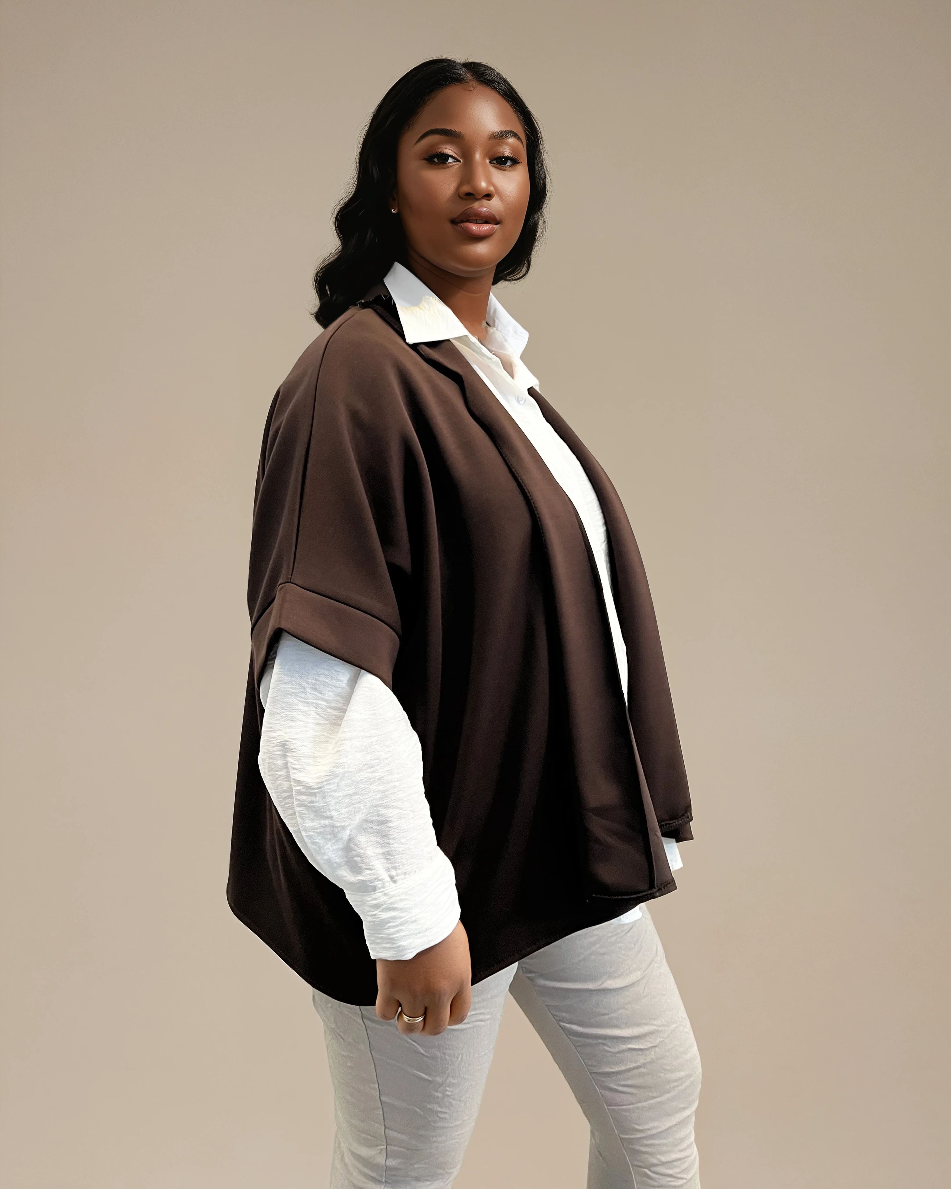 Cardigan utan knäppning brun