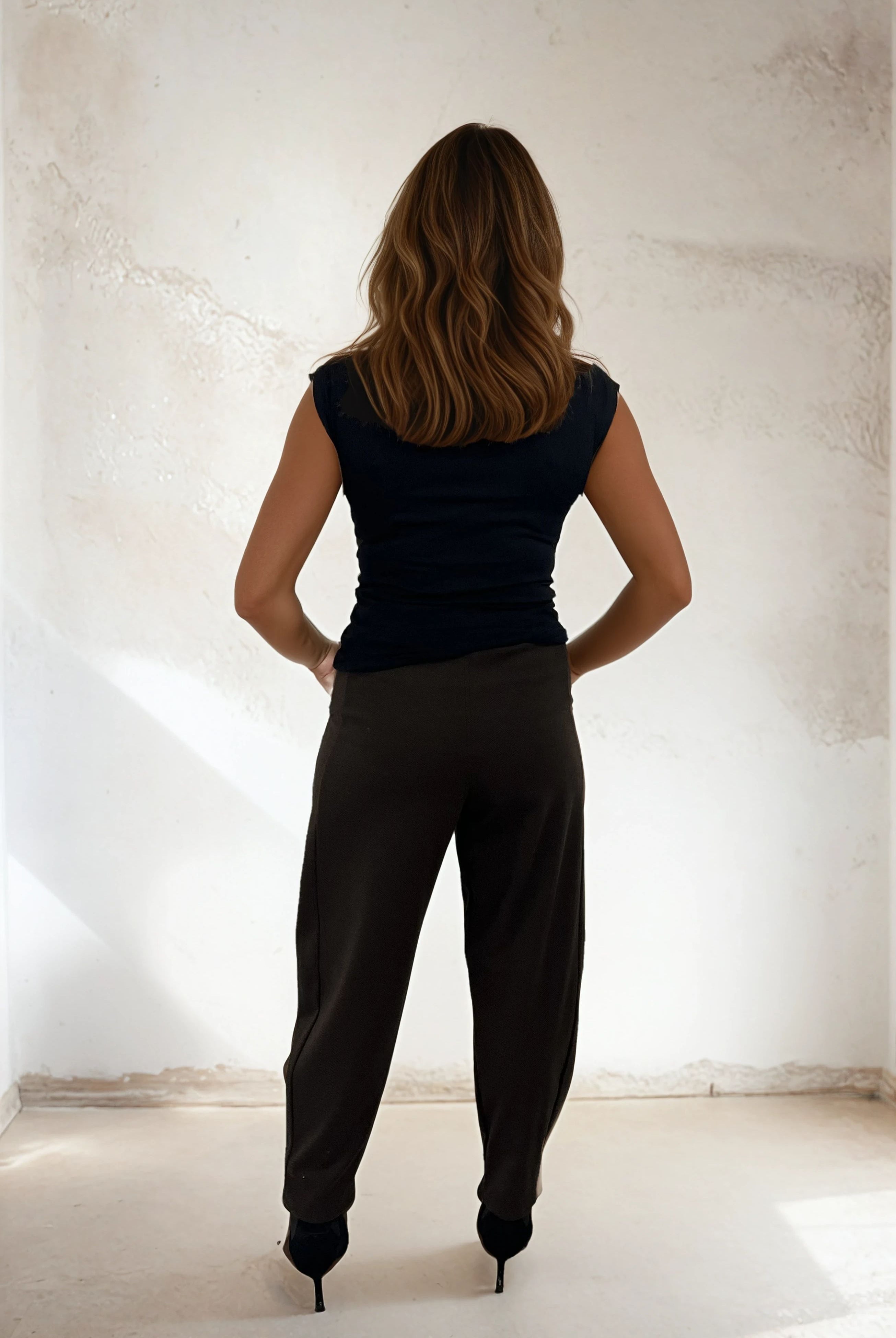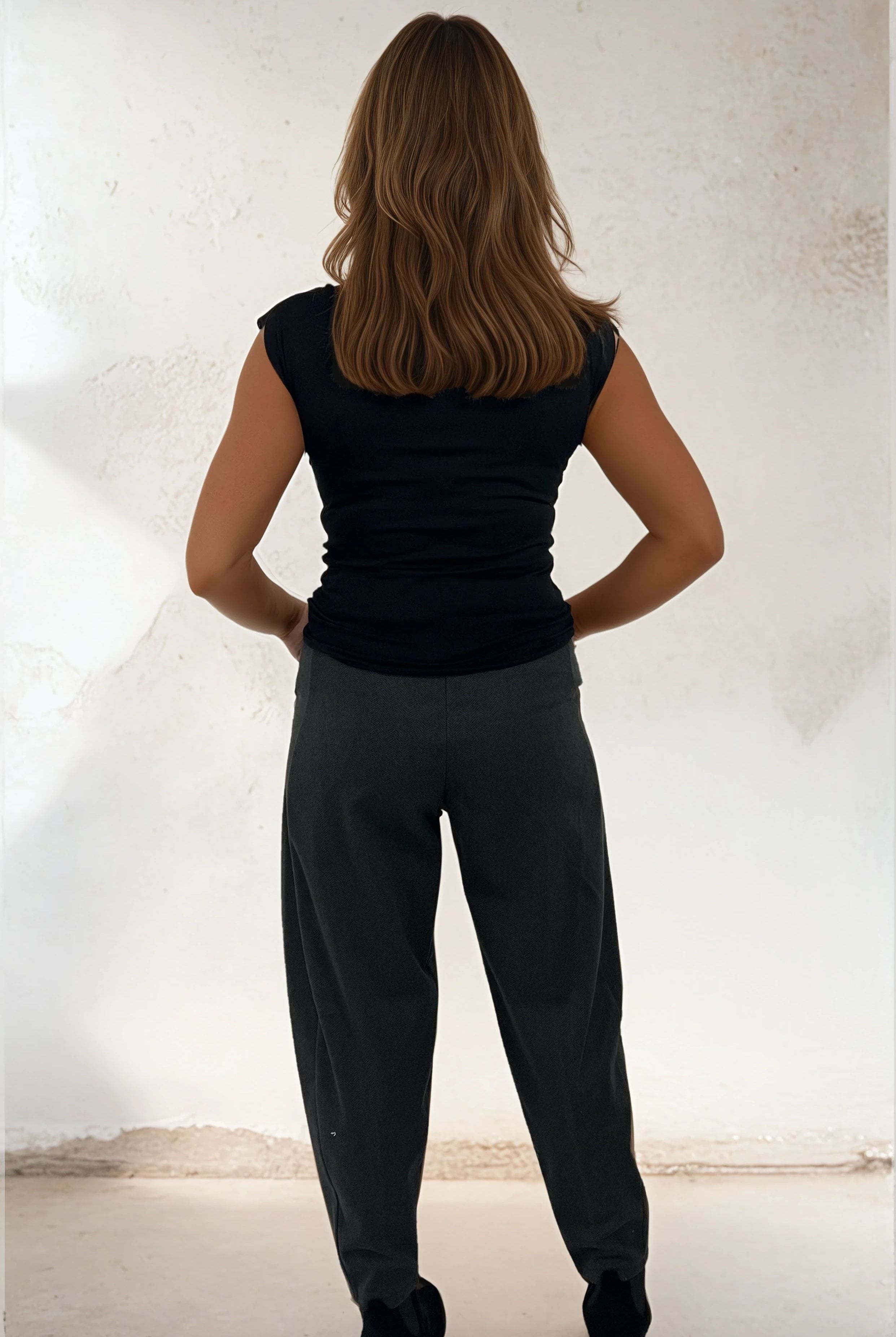 Högmidjade dambyxor är ett tidlöst plagg som aldrig går ur modet. Med en fokuserad design och noggrant hantverk ser vi till att dessa dambyxor håller högsta kvalitet och hållbarhet. Varje söm är noga utformad för att inte bara se snygg ut, utan också för att hålla länge, vilket gör dem till en långsiktig investering i din garderob.