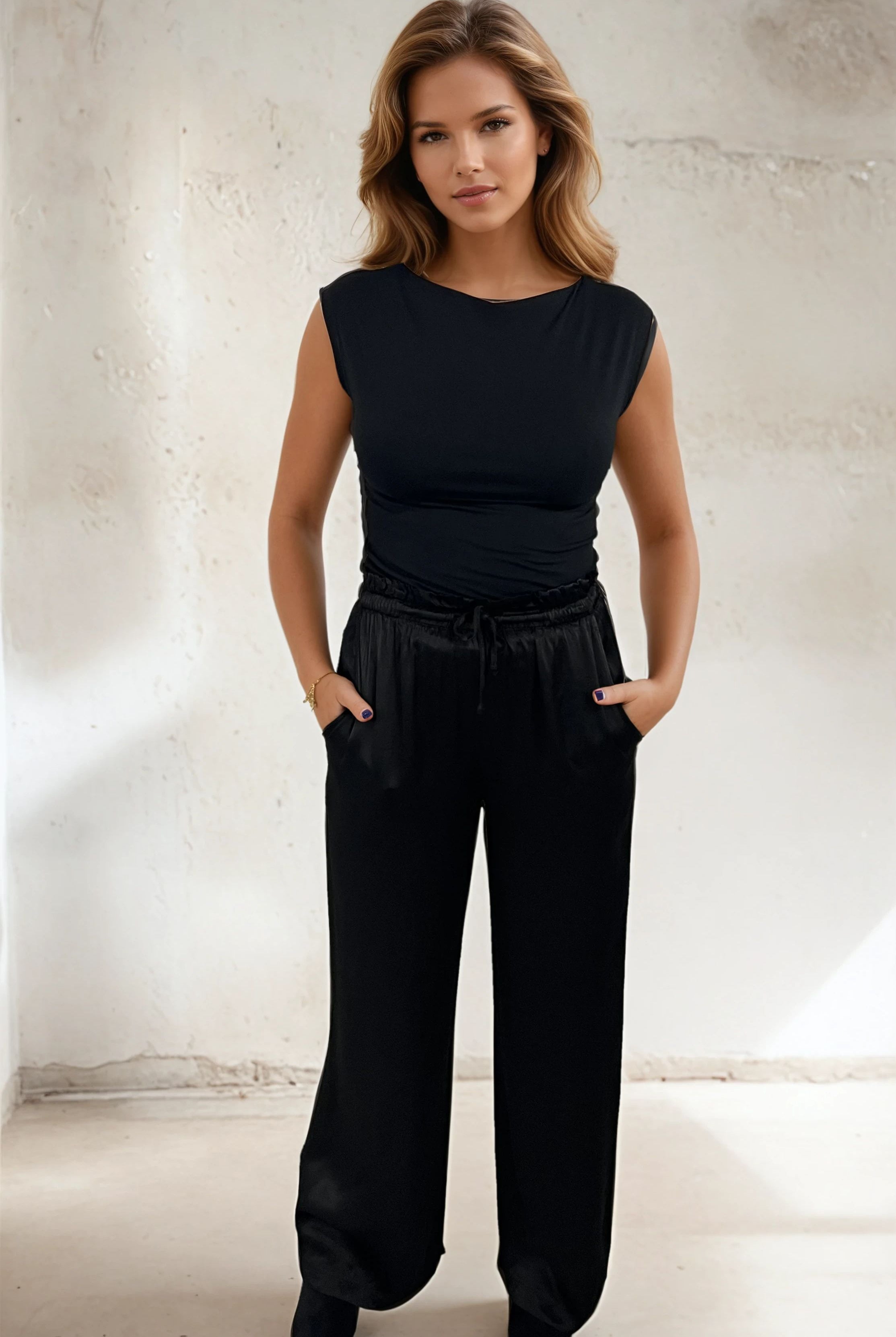 Den här typen av dambyxor passar alla kroppstyper och är särskilt populära hos kvinnor som söker en bekväm lösning utan att behöva kompromissa på stil. Du kan enkelt kombinera dessa byxor med en lös blus eller en figursydd topp för en mångsidig look som fungerar lika bra till vardags som till festligare tillfällen.