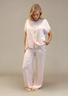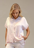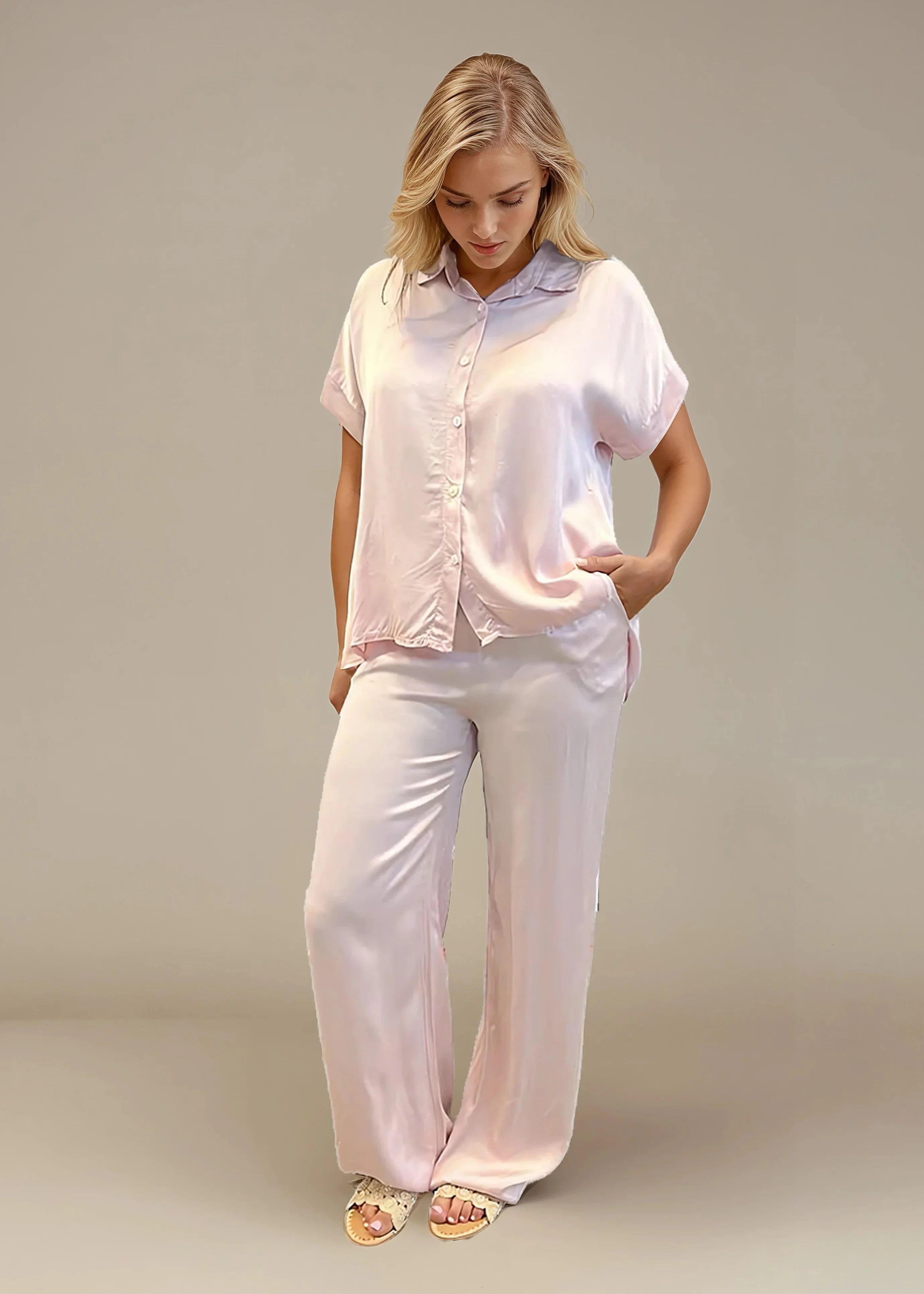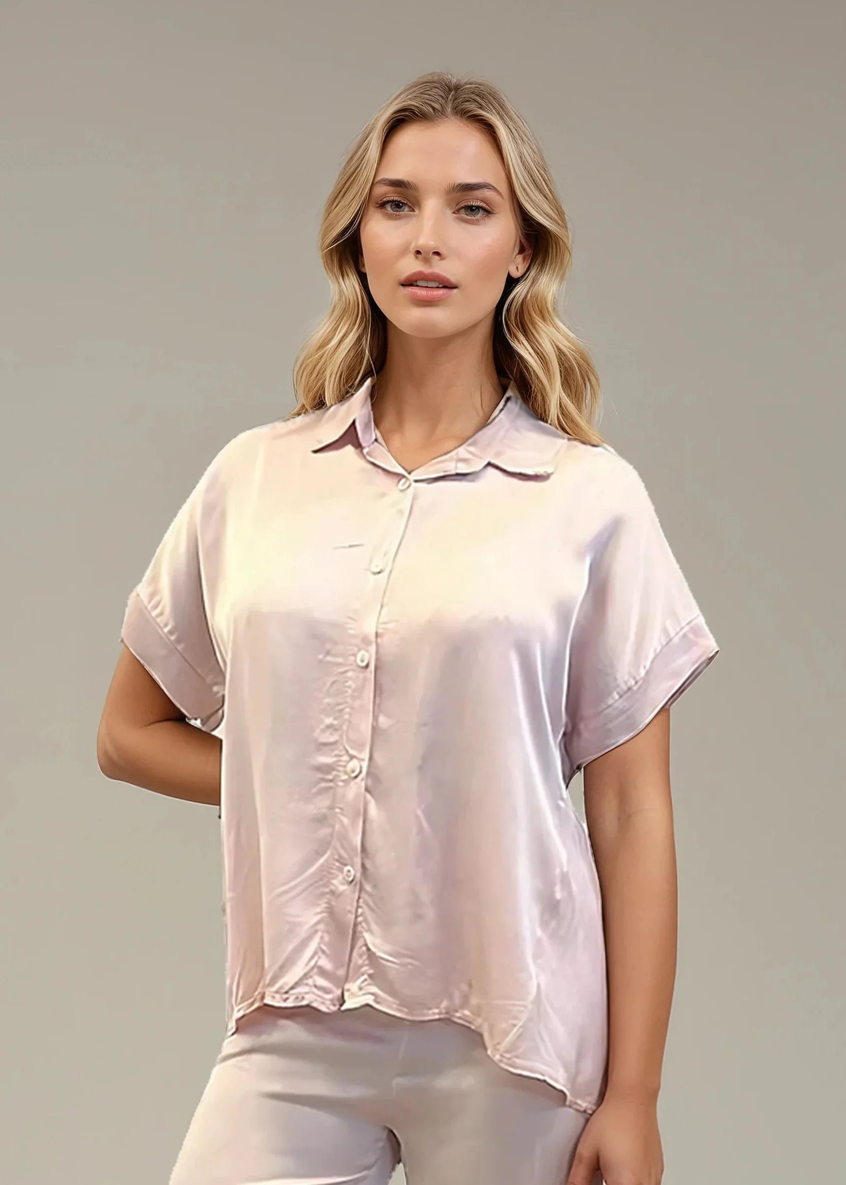 Finns i färgerna vit, ljusblå, beige, rosa, khaki och svart. Matcha med vår byxa Ylva i samma skimrande material för en hel look som säger ”svalt självförtroende med glans på köpet”.