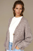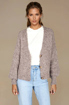 Mjuk och stilren kofta i ljusbrun nyans med klassisk V-ringning och knappar framtill. Långärmad onesize-modell som är lika fin att bära öppen över en topp som stängd för en mer klassisk look. Den lätta och stretchiga kvalitén ger både komfort och passform.