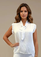 Top Ylva med rosett kommer i flera drömmiga färger: vit, ljusblå, beige, rosa, khaki och svart – och ja, du kommer vilja ha minst två (minst). Den är tillverkad i Italien med kärlek och är en del av vårt eget märke Mirelle Design.