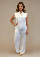 Matcha med vår byxa Ylva i samma lyxiga material för en outfit som är lika bekväm som den är snygg – och redo för allt från kontorsfika till sommarens festligheter.