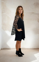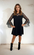 Feminin elegans med modern twist ✨ Klänning Leah från Mirelle Design är en stilfull klänning med vackra spetsärmar och transparent spets över axlar och bröst. De vida trumpetärmarna i spets ger en romantisk och elegant känsla, medan den klassiska A-linjeskärningen skapar en smickrande silhuett. Perfekt för festliga tillfällen eller en chic kvällslook.