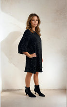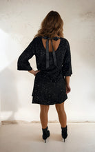 Glittrande glamour med en feminin touch ✨ Paljettklänning Alicia från Mirelle Design är en festlig klänning täckt av skimrande paljetter med en elegant öppen rygg som knyts med en svart rosett. En klänning som kombinerar stil, komfort och festkänsla på bästa sätt. Passformen är ledig och bekväm, vilket gör den lika perfekt för middagsbjudningar som till julens eller nyårets festligheter.