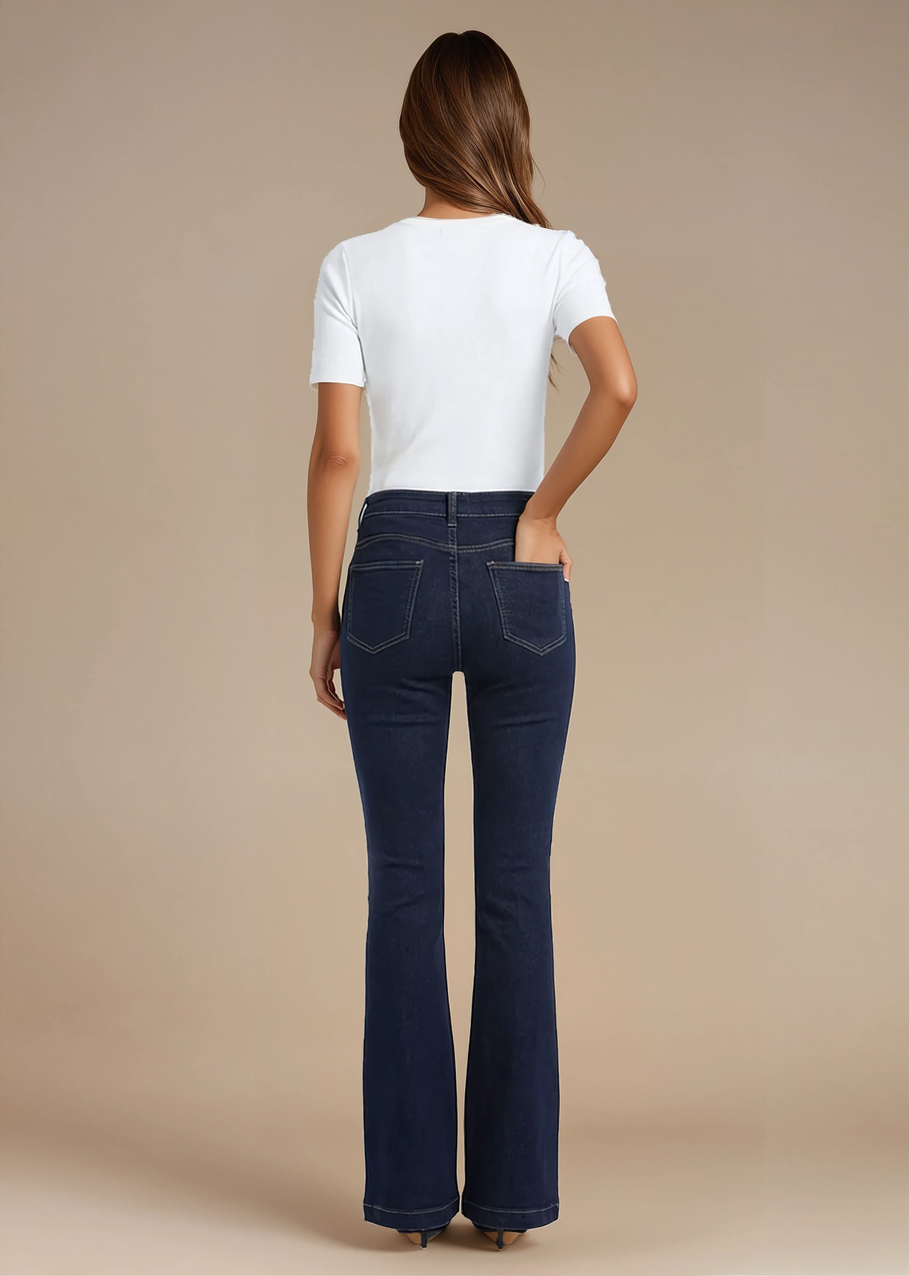 Passform: Push up flare – figurnära upptill med utsvängda ben
