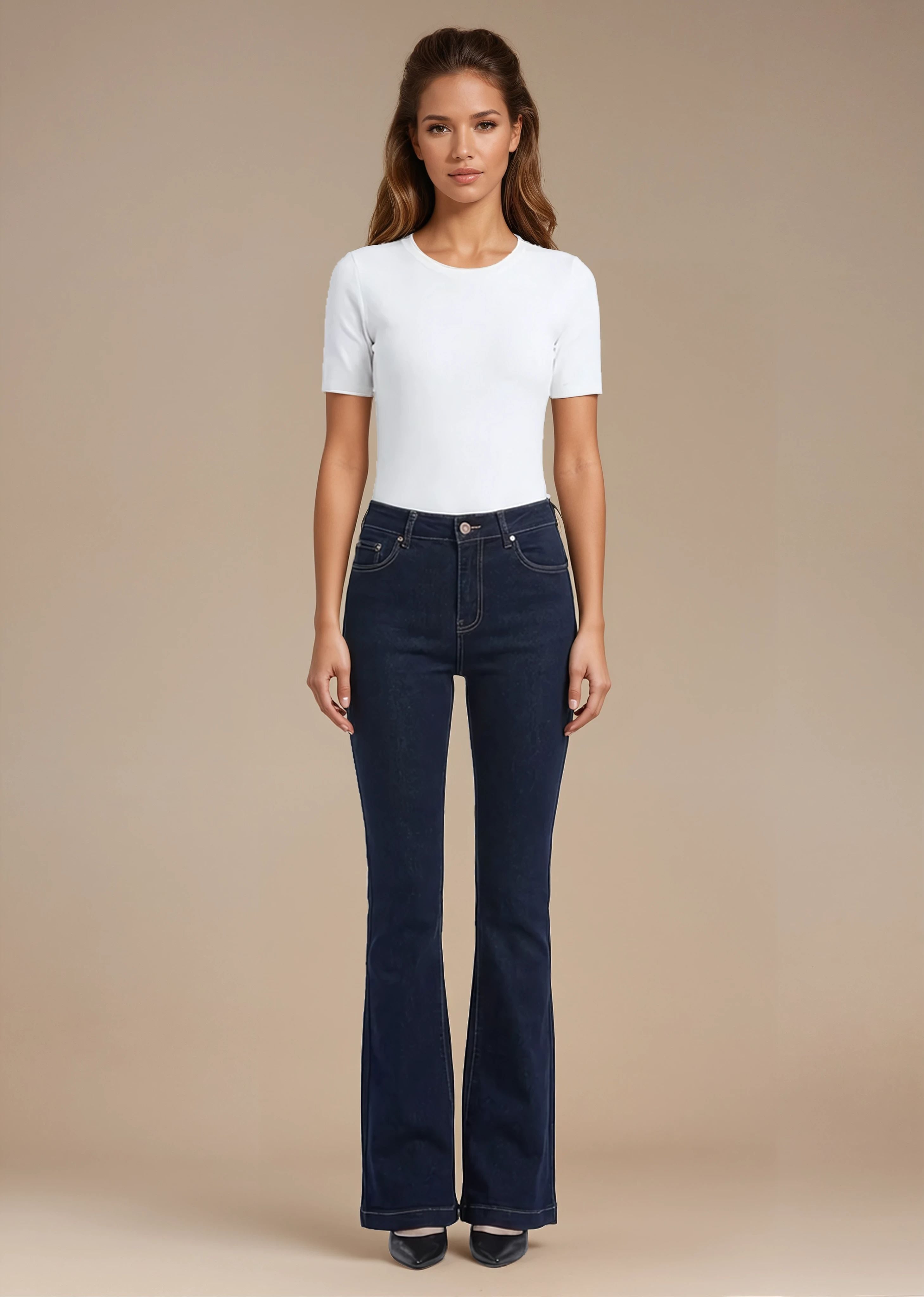 Trendiga och bekväma push up flare-jeans från det franska märket G-Smack. Jeansen kombinerar en figurnära passform upptill med en lätt utsvängd benslut som ger en elegant siluett. Tack vare push up-designen formas och lyfts dina kurvor på ett smickrande sätt.