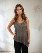 Det mjuka, vävda tyget i 100 % viskos har en lätt lyster och faller vackert mot kroppen, medan den asymmetriska nederkanten med spets skapar en stilfull och luftig look. Linnet är något längre i sidan med en elegant slits som ger extra rörelsefrihet och ett smickrande fall.