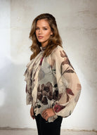Låt romantiken blomma i Blus Alina från Mirelle Design – en elegant och luftig blus i transparent tyg med vackert blommönster. Den feminina volangdetaljen framtill ger en mjuk silhuett, medan den tunna, följsamma chiffongen skapar ett exklusivt och drömlikt intryck.