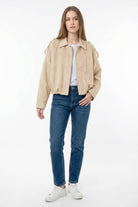 Ge din outfit en lyxig touch med vår jacka med mockalook – en trendig och tidlös favorit som funkar lika bra till jeans som över en klänning. Den mjuka, mockainspirerade ytan ger ett exklusivt uttryck, medan den kortare modellen och den avslappnade passformen skapar en modern siluett.