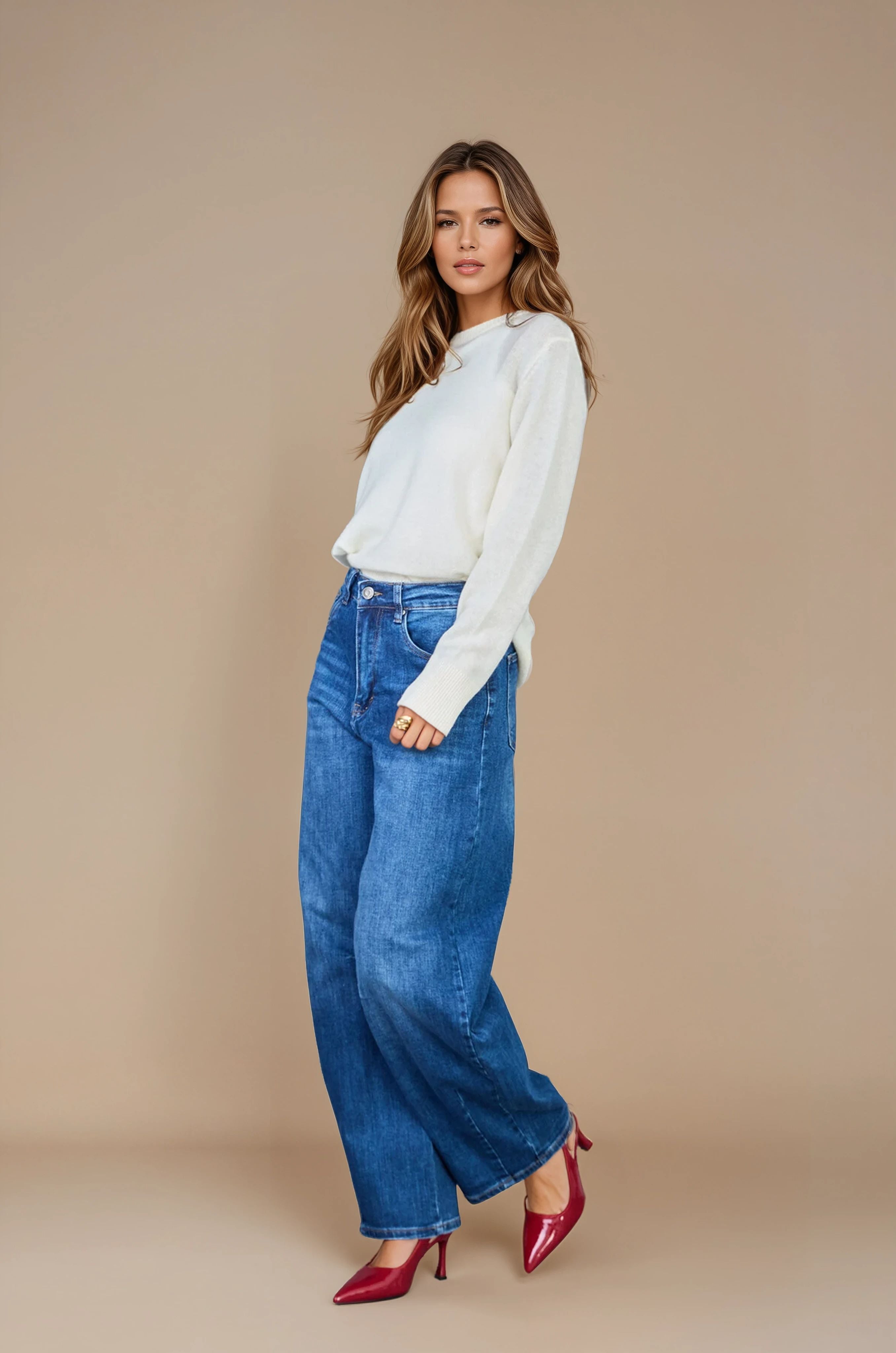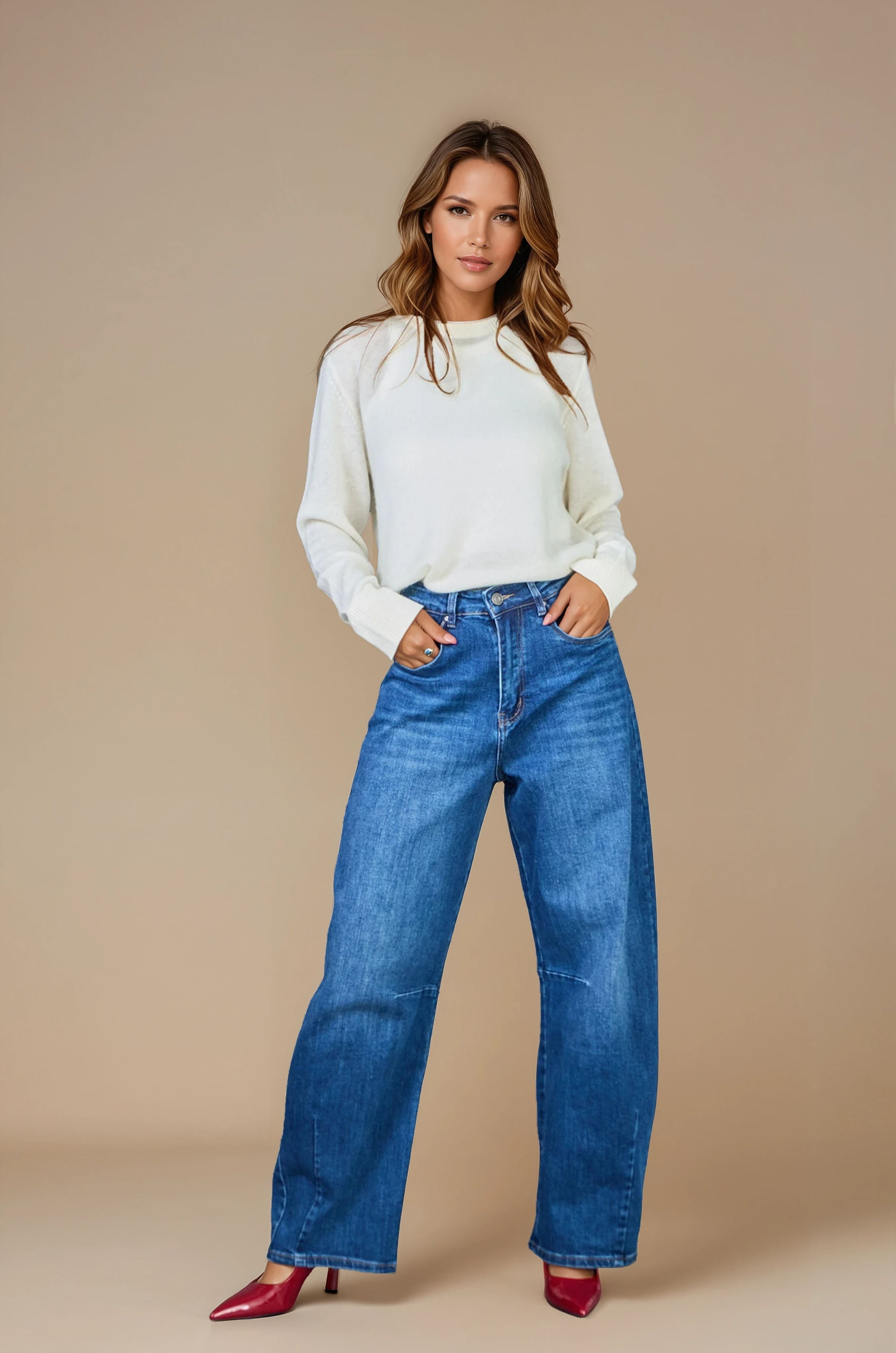 ⭐ Jeans Louisa Barrel Mörkblå – Trendigt, Bekvämt & Smickrande Passform