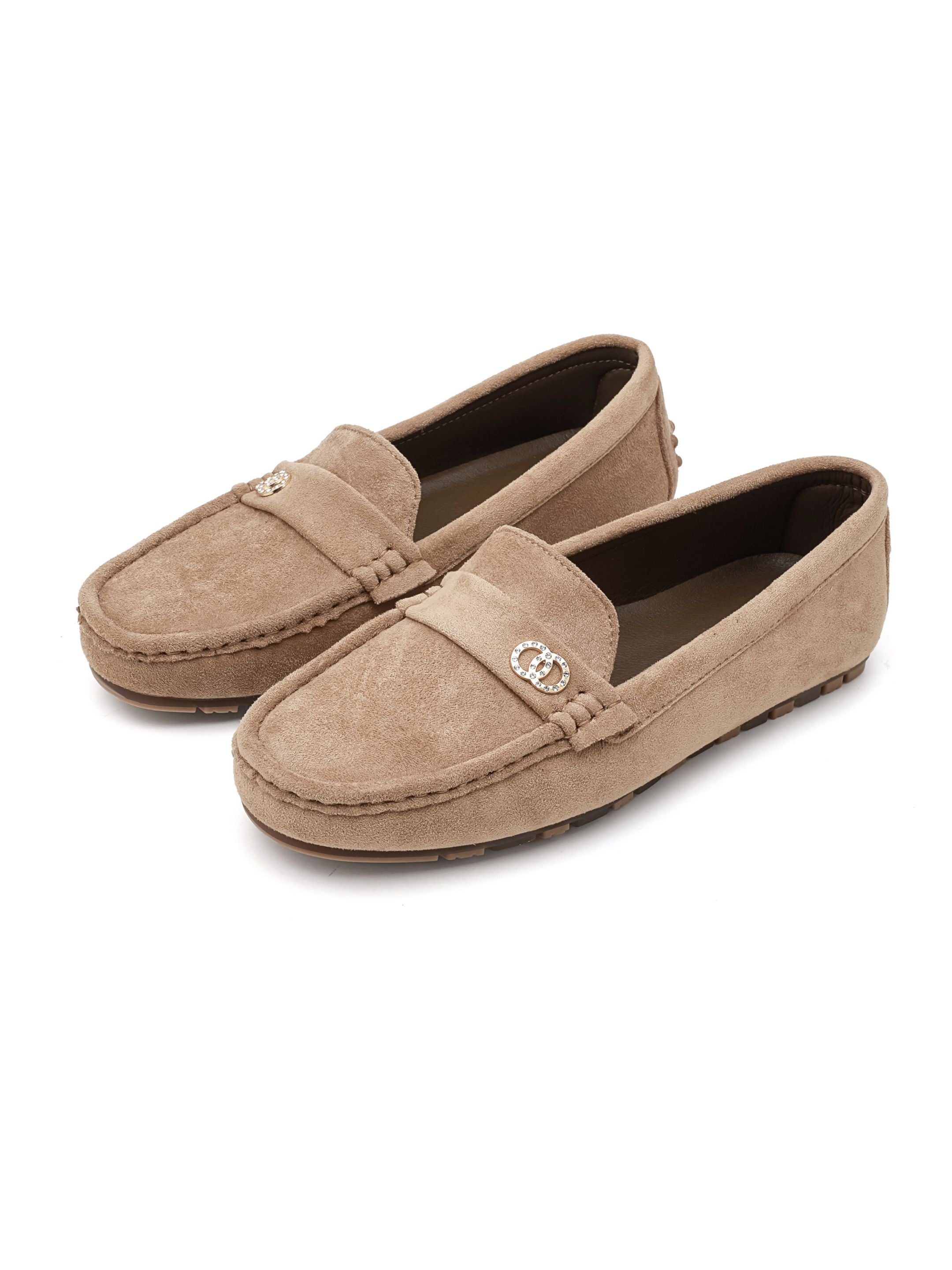 Denna stilrena mockasin kombinerar klassisk design med en feminin och elegant detalj i form av ett diskret glittersmycke. Tillverkad i ett mjukt mockaliknande material med sammetslen känsla, vilket ger både komfort och ett exklusivt uttryck.