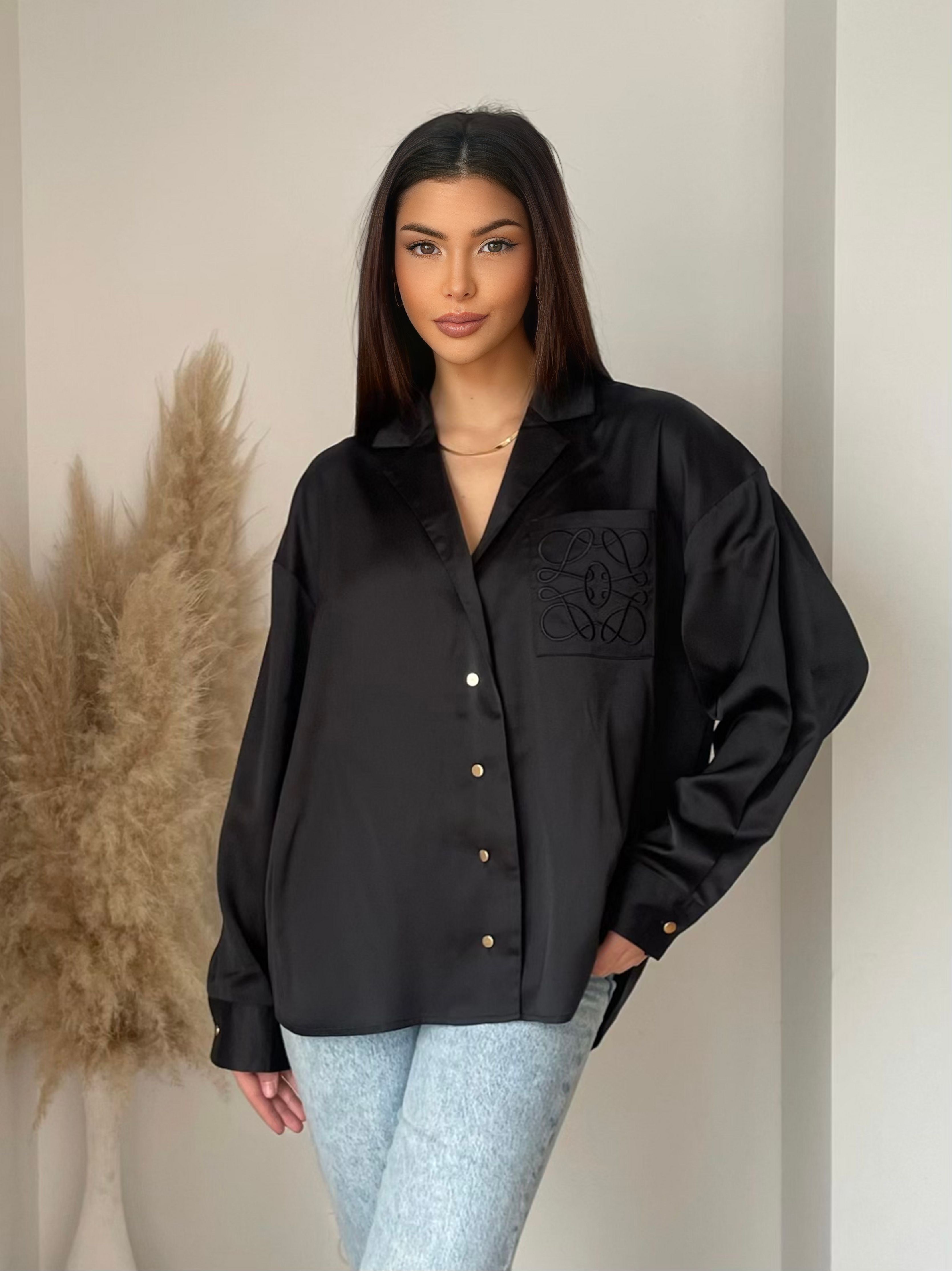 Elegant och tidlös skjorta med exklusiv monogramdetalj som ger ett sofistikerat och stilrent uttryck. Skjortan har en mjuk, följsam kvalitet med lätt lyster som faller snyggt mot kroppen och ger en lyxig känsla. Det diskreta monogrammet på bröstfickan fungerar som en elegant detalj utan att ta över helhetsintrycket.
