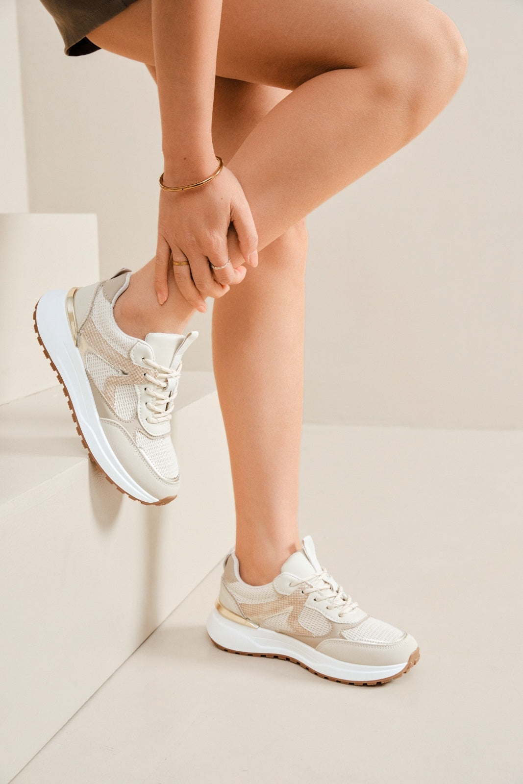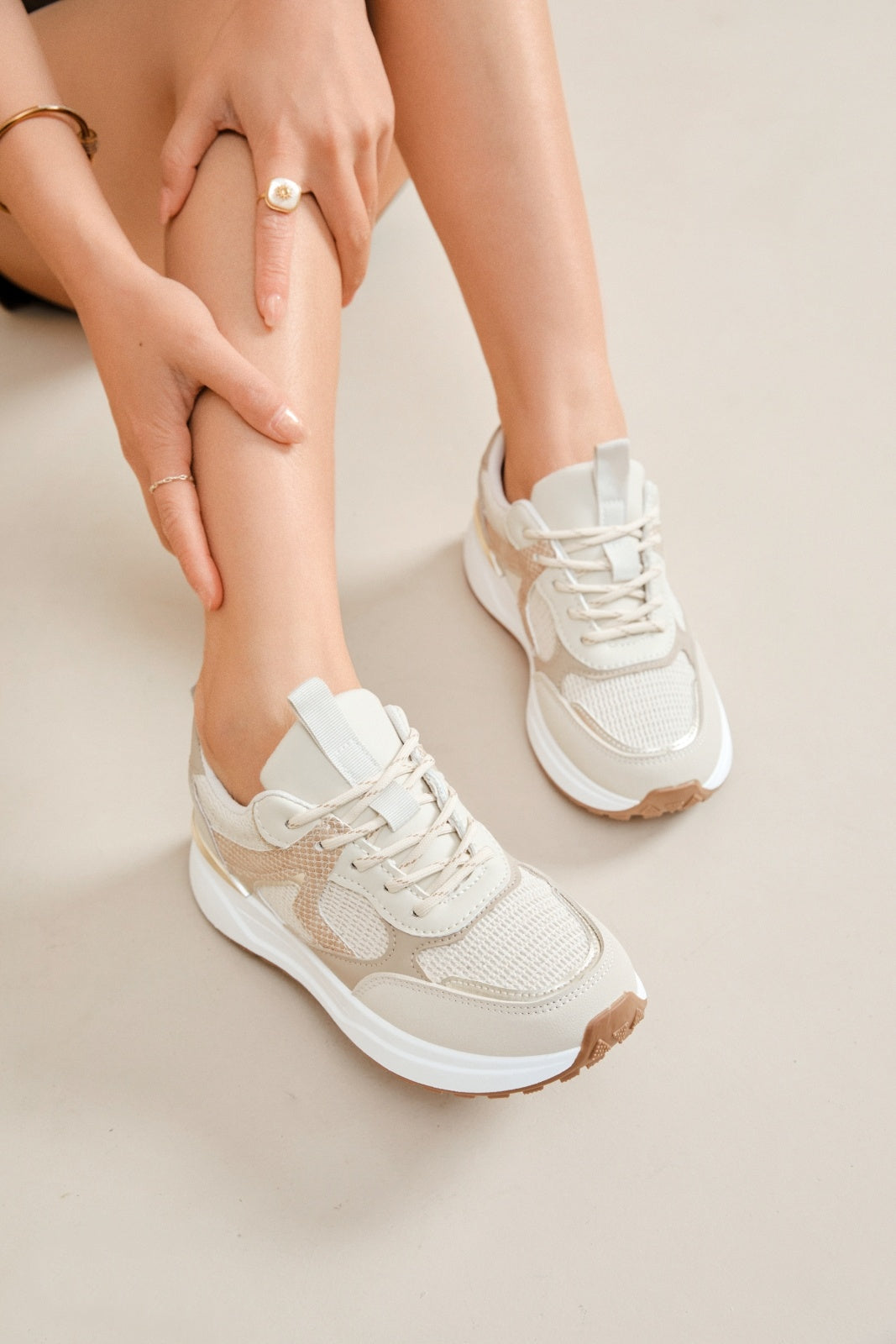 Sneakers Evie Beige är den perfekta kombinationen av sportig komfort och modern elegans. Med sin trendiga, låga design och kraftiga sula får du en sko som både är stilren och bekväm – perfekt för vardagens alla steg.