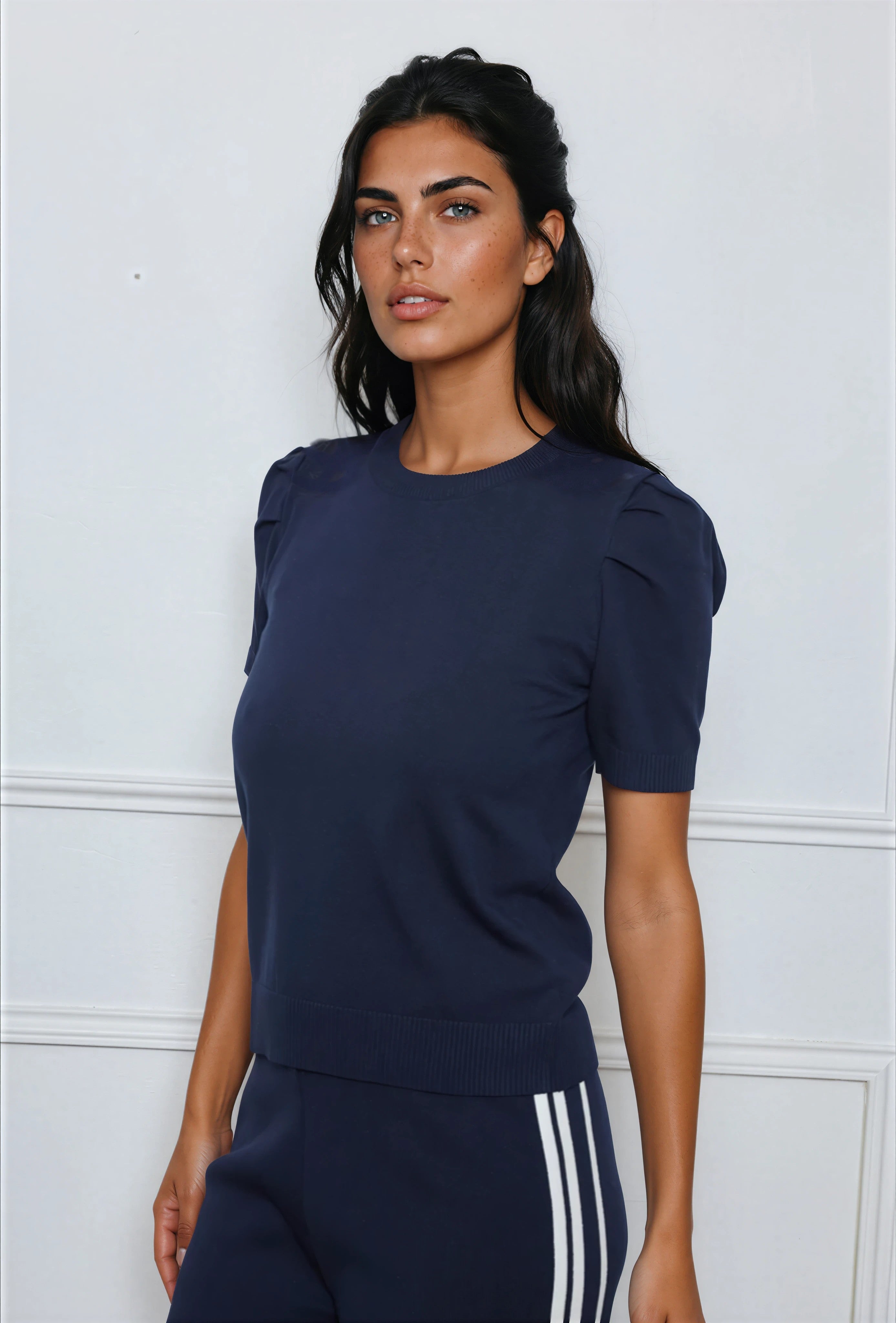 Elegant och stilren topp i en mjuk och bekväm viskosblandning. Modellen har korta ärmar med diskret puff vid axeln som ger ett feminint och modernt uttryck. Den klassiska rundade halsringningen och den enkla designen gör toppen lätt att matcha både till kjol, jeans eller byxor.