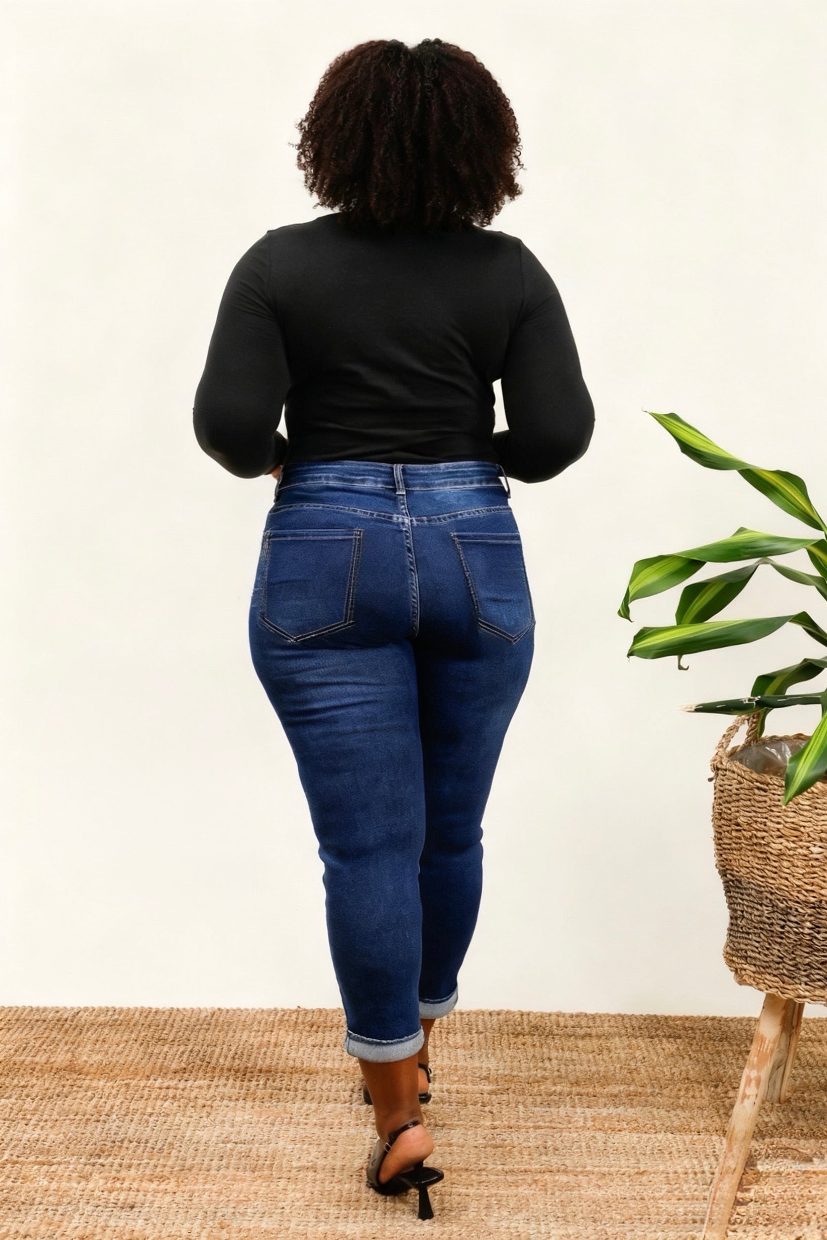 Dessa momfit-jeans i queensize är ett riktigt vardagsfavorit-plagg som kombinerar stil och komfort på bästa sätt. Den klassiska momfit-passformen ger en avslappnad men smickrande silhuett med hög midja och skönt utrymme över höfter och lår.