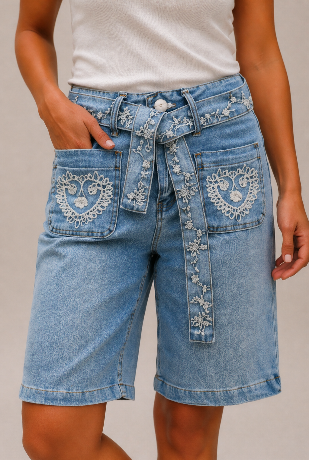 Våra jeansshorts är en riktig garderobsfavorit och passar lika bra till en enkel t-shirt som till en somrig blus eller topp. För dig som vill ha en mer sofistikerad look erbjuder vi även shorts med dekorativa detaljer, som broderier och struktur, som ger ett unikt och stilfullt uttryck. Många av våra modeller är designade med hög midja, vilket ger en smickrande passform och framhäver figuren på ett naturligt sätt.