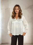 Tyget faller lätt mot kroppen och ger en följsam passform som känns både bekväm och lyxig. En blus du enkelt klär upp eller ner beroende på tillfälle.