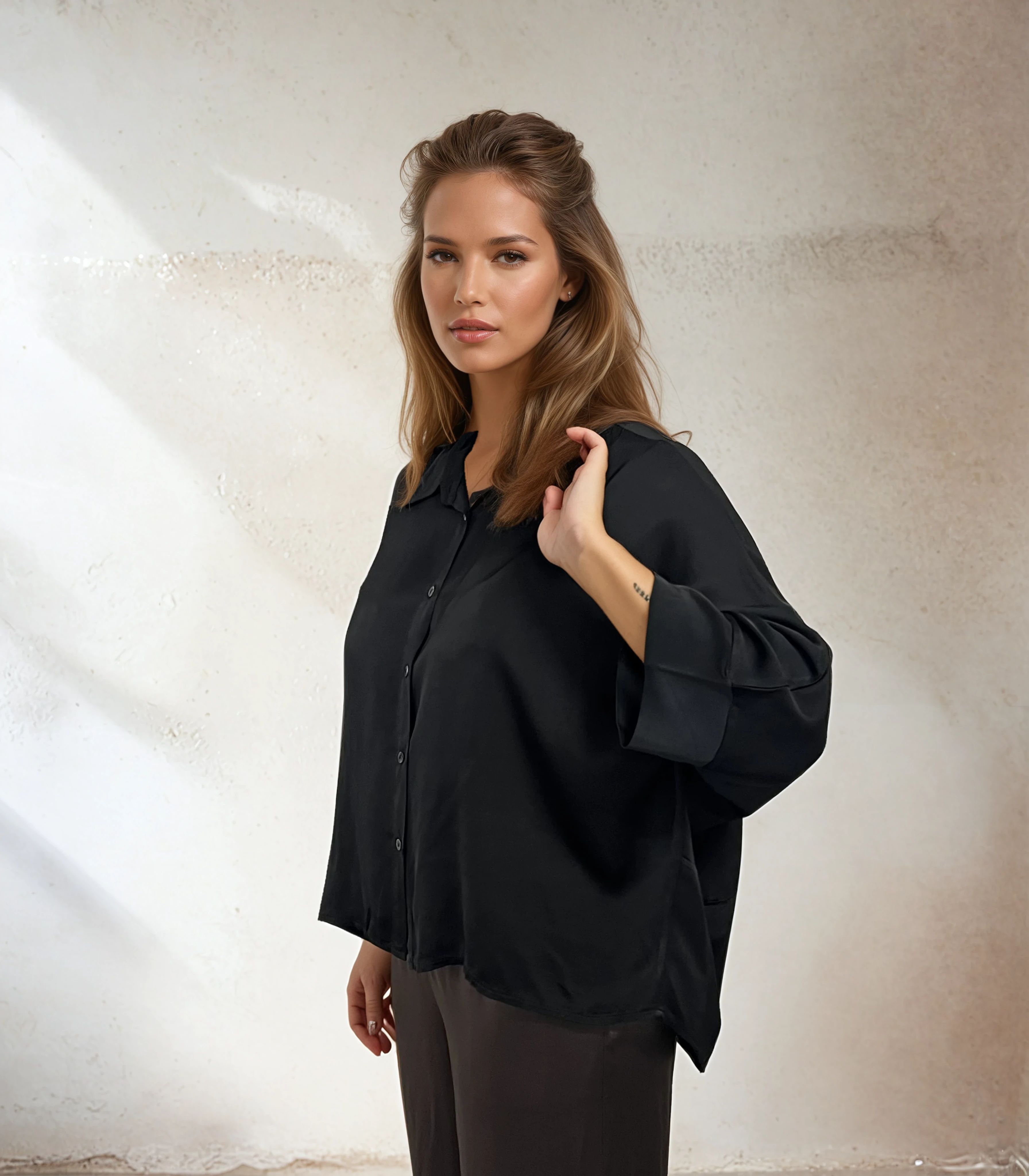 Elegant, luftig och tidlöst stilren 🌸 Blus Meja från Mirelle Design är en sofistikerad blus i lätt, glansig viskos med vackert fall och fjärilsärm som ger en avslappnad men elegant silhuett. Modellen har en klassisk krage och knappstängning framtill, vilket gör den enkel att styla både till kjol och byxor. Den lediga passformen och det mjuka tyget gör den lika bekväm som den är stilfull – perfekt för både vardag och fest.