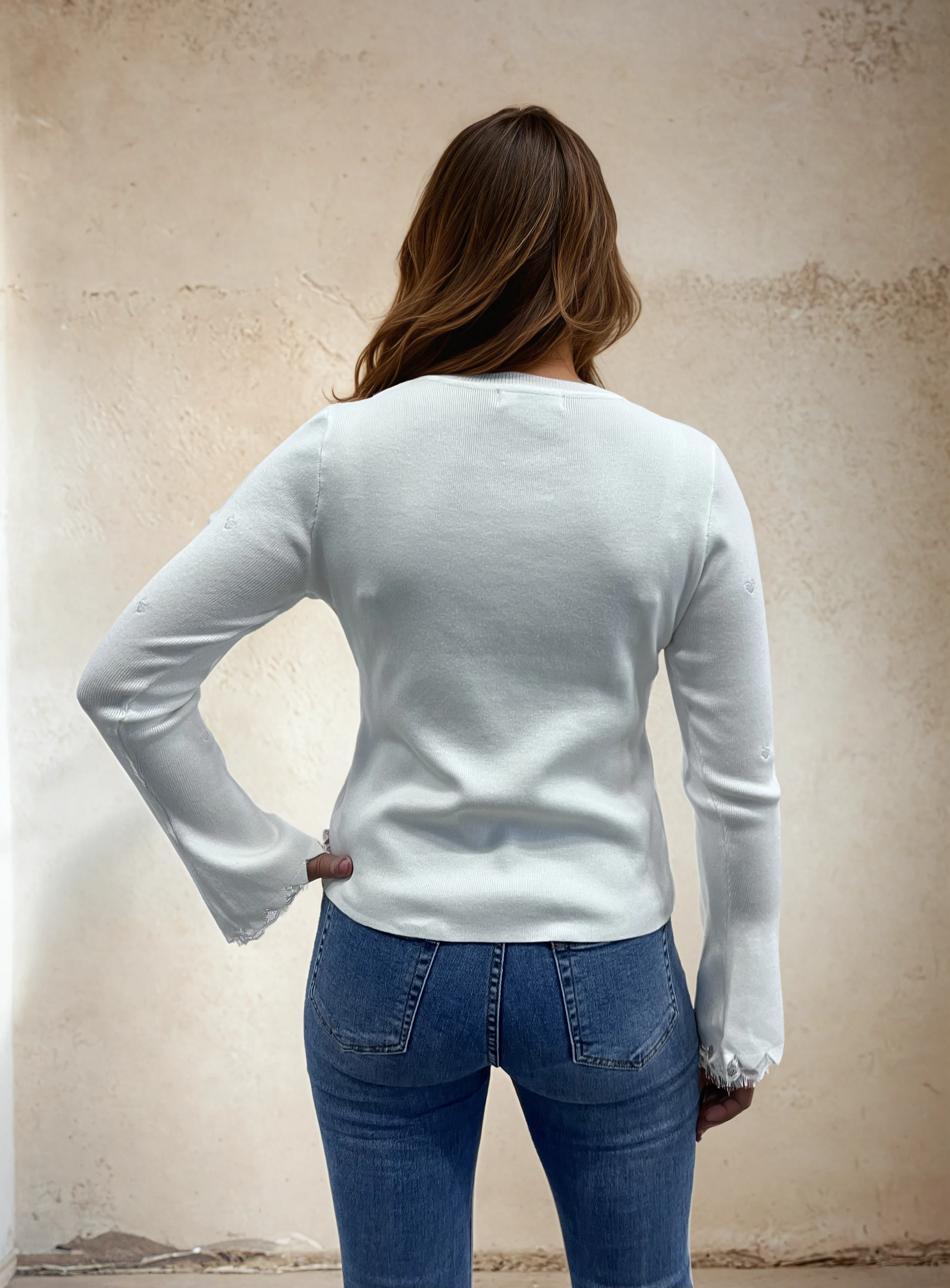 🤍 Finstickad Tröja med Broderade Hjärtan – Mjuk Viskosmix med Romantiska Detaljer 🤍