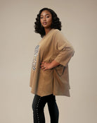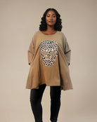 En cool och bekväm tröja från Mirelle Design, tillverkad i Italien. Framtill pryds den av en trendig döskalle i leopardmönster med dekorativa stenar som ger extra attityd. Modellen är rymlig och lätt A-linjeformad med ¾-ärmar, vilket gör den både skön och smickrande att bära.