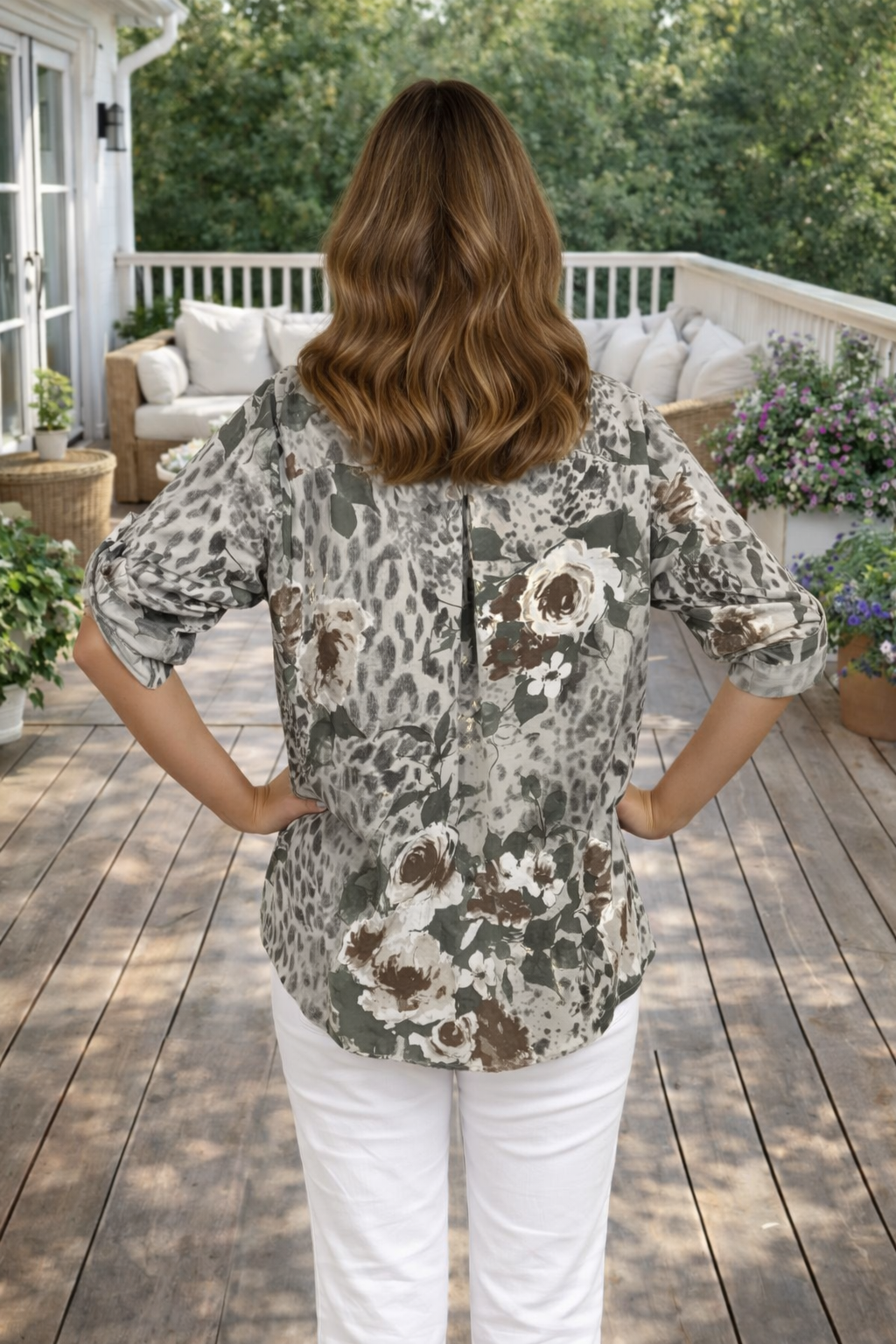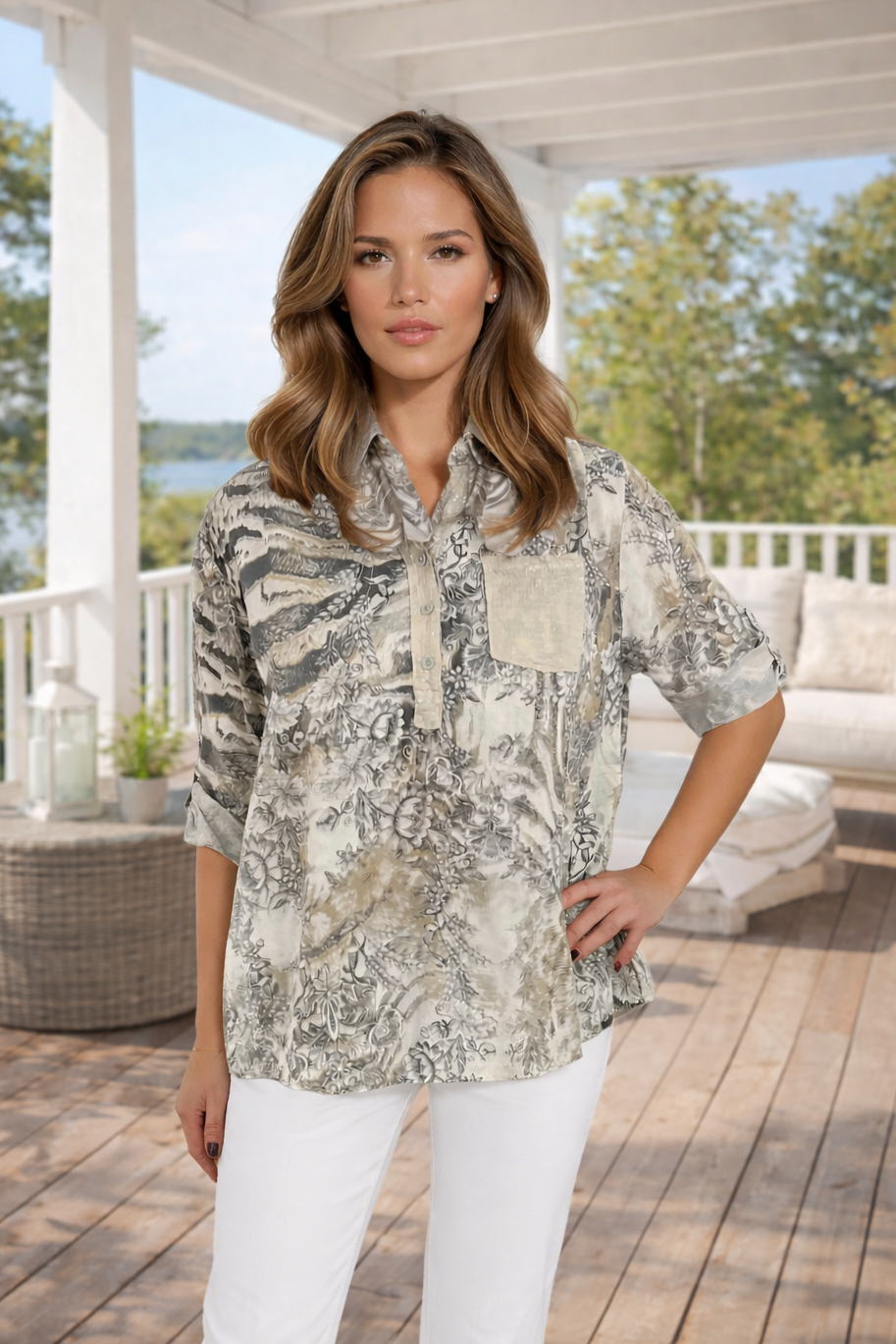 Bluse Billan batik blomst taupe