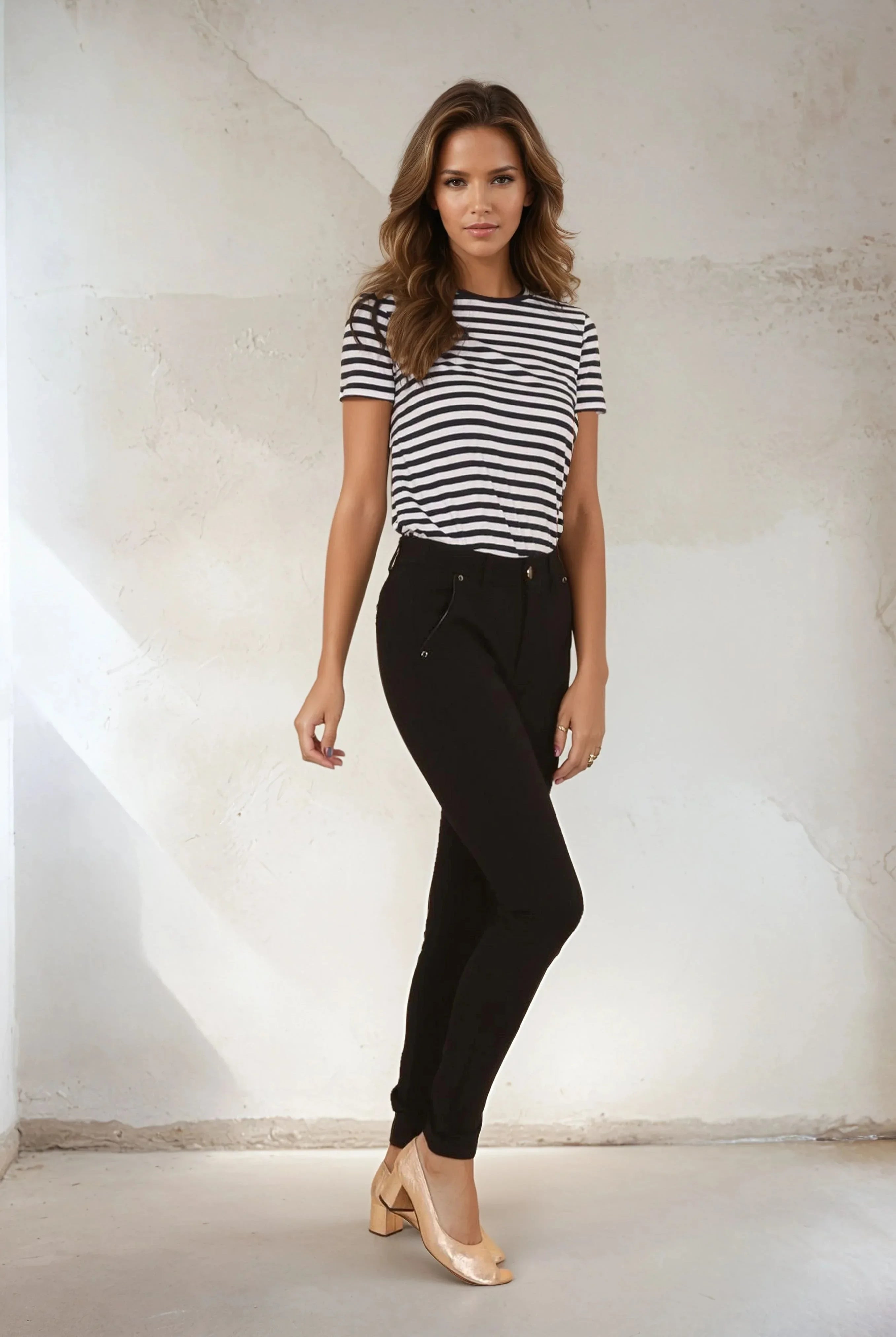 Denne type kvinders bukser passer til alle typer krop og er især populær blandt kvinder, der leder efter en behagelig løsning uden at skulle gå på kompromis med stil. Du kan nemt kombinere disse bukser med en løs bluse eller en figurlavet top til et alsidigt look, der fungerer lige så godt til hverdagen som til flere festlige lejligheder.