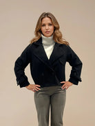 🤎 Med sin kortere model, klassisk jakke krave, der bliver til en V-hals halsudskæring og en enkelt snap med to handsker og kroge, bliver det et unikt udsagns tøj.