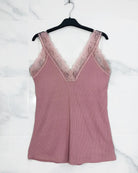 Linned med blonder lyserød