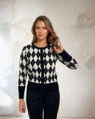 Rutan er en elegant og tidløs cardigan med det klassiske argyle-mønsteret som giver et stilrent og sofistikeret udtryk. Den er fint strikket og har en lige pasform med ribmanchetter og knapper foran - perfekt at have på både lukket som sweater eller åben over en bluse.