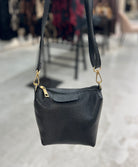 En kompakt og stilren sort håndtaske med smuk struktur og klassiske detaljer i antik guld. Perfekt både til hverdag og fest, når du vil have det vigtigste på - med stil.