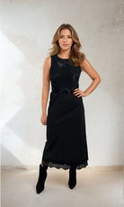 Skirt Alba er en elegant og tidløs plisseret nederdel med smukke blondedetaljer, der giver en eksklusiv og feminin følelse. Den bløde elastik i taljen gør den behagelig at have på hele dagen, mens det smidige stof giver et smukt fald og en flatterende silhuet. Den asymmetriske blondekant skaber et romantisk udtryk, der passer til både hverdag og festlige lejligheder.