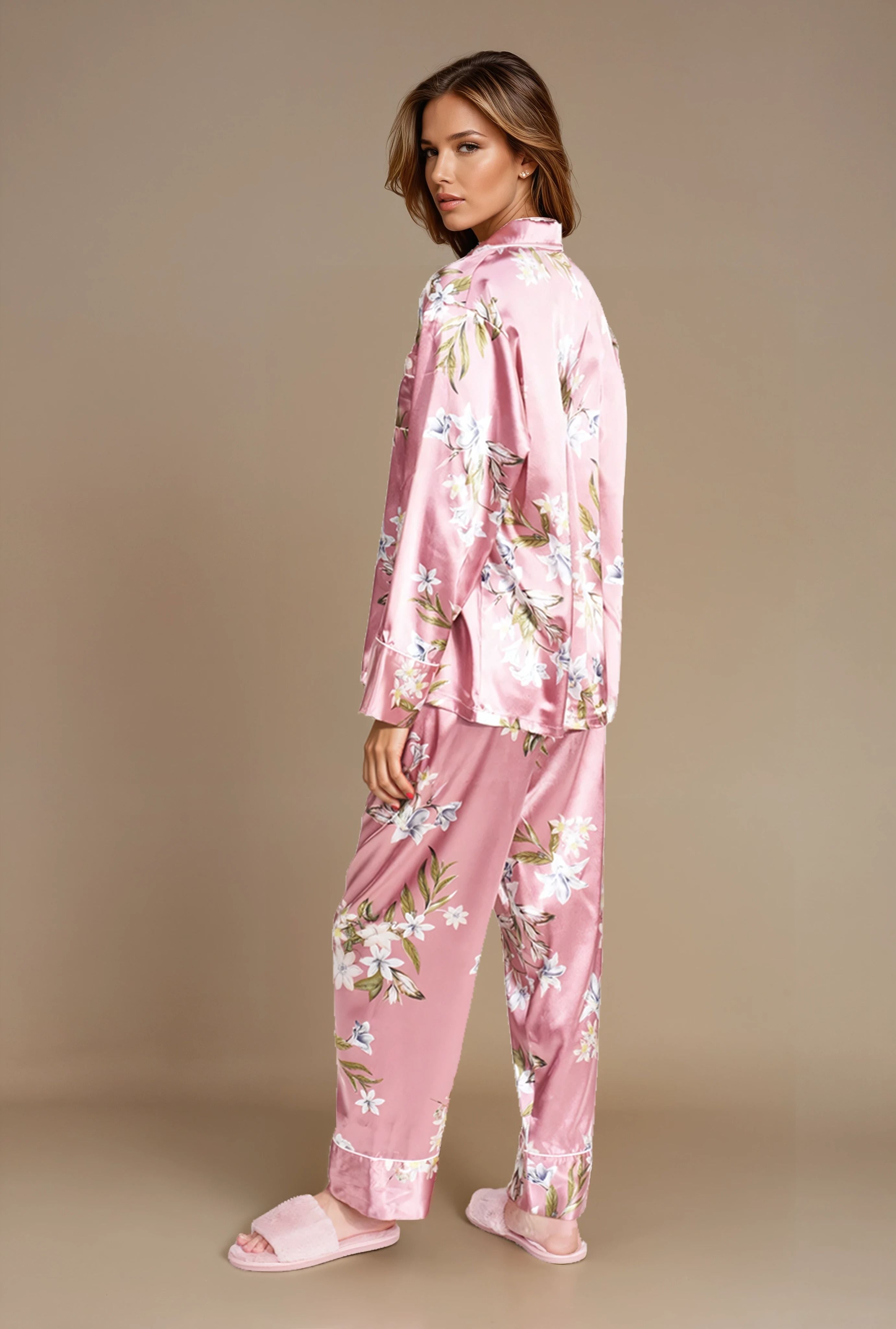 Satin Pyjamas 2-Set - Floral & Luksuriøs Shimmer