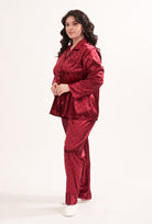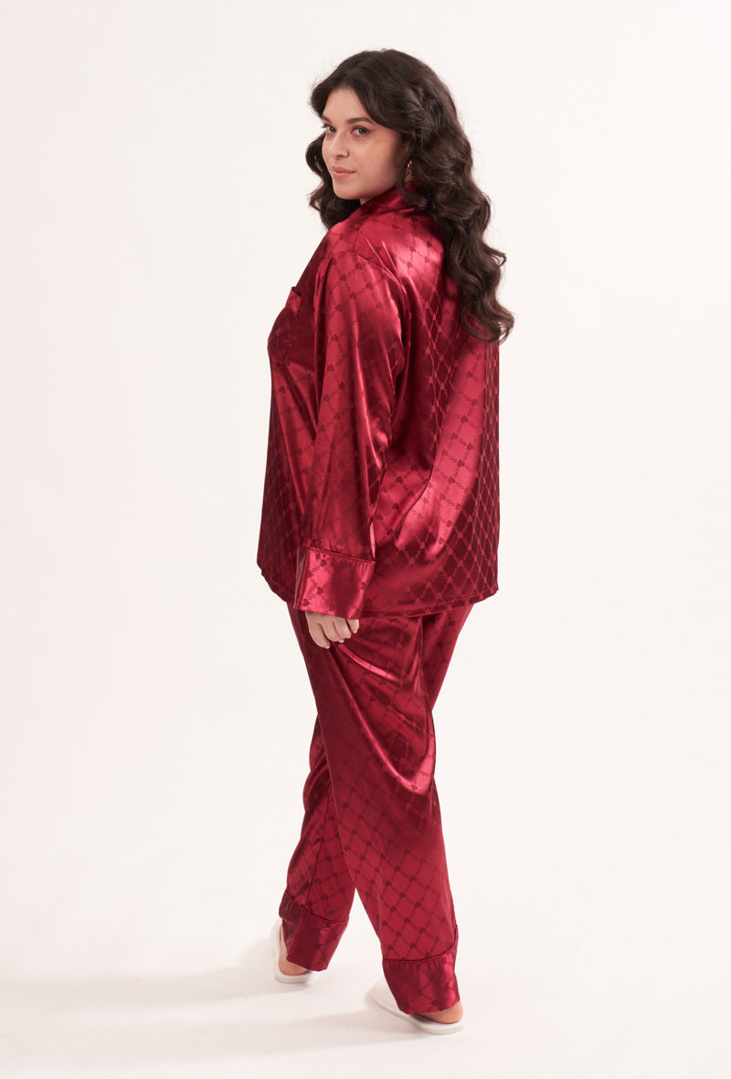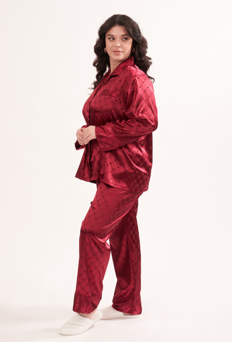 Satin pyjamas 2-sæt mørkerød