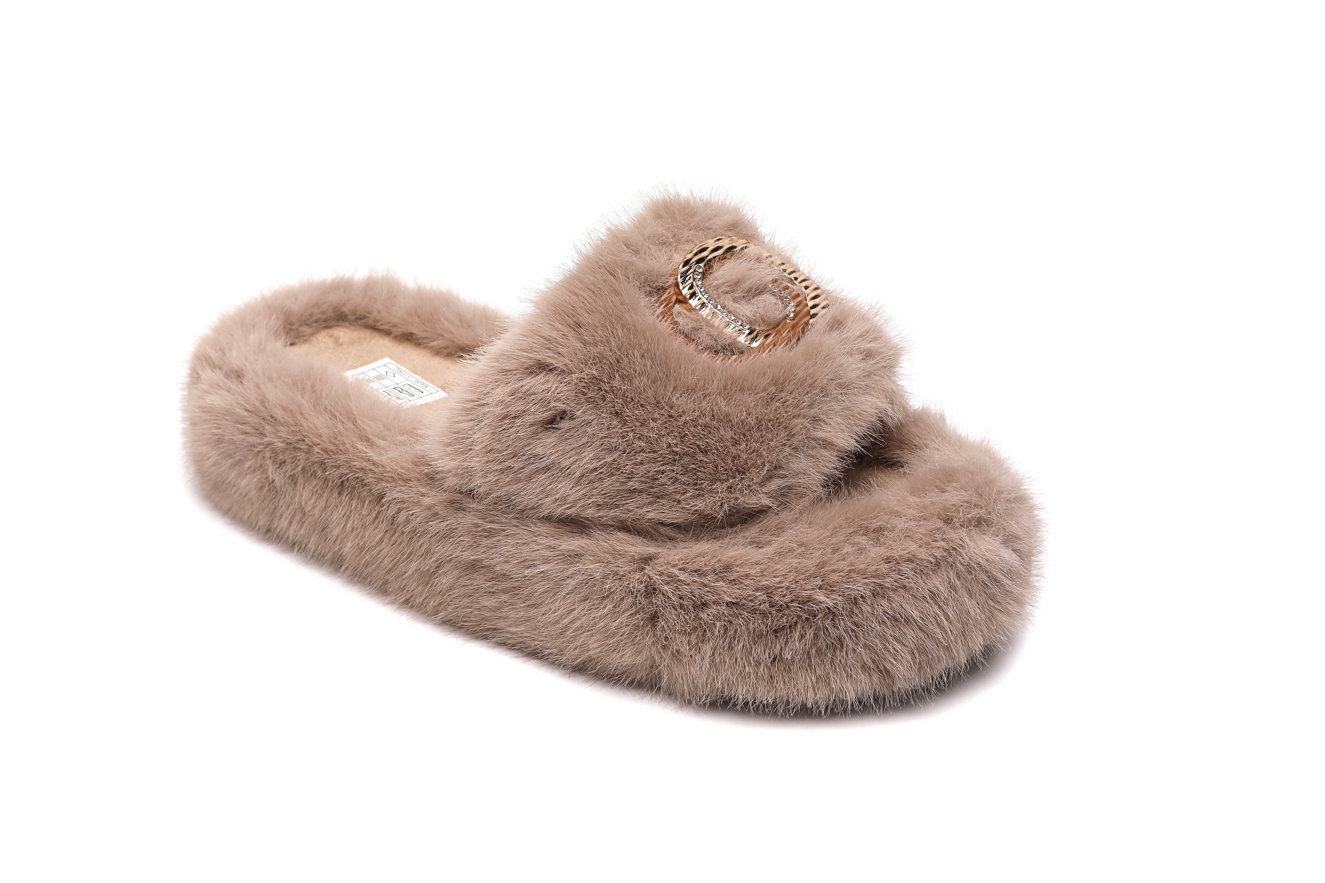 Disse fluffy slip-ins er varmende, luksuriøse og utrolig komfortable. Den bløde imiterede pels omslutter foden som en sky, mens spændet tilføjer et moderne og elegant touch. Et must for dem, der elsker komfort uden at gå på kompromis med stilen!