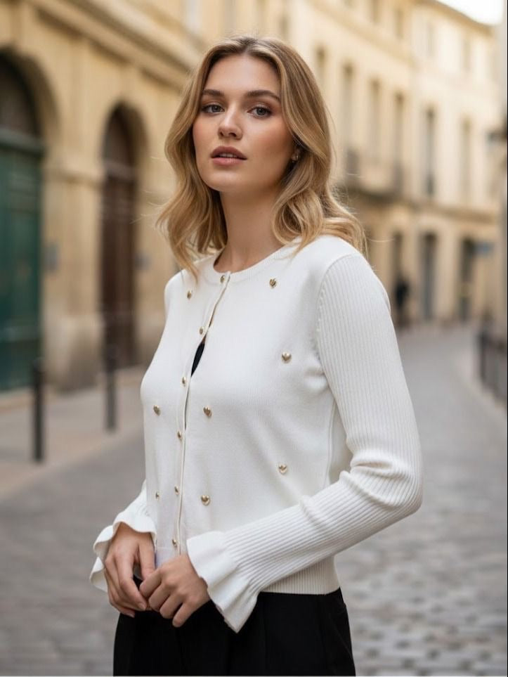 Cardigan med guldhjerter - feminin elegance med lidt ekstra