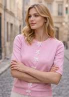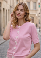 Cardigan med sløjfeknapper pink