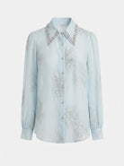 En romantisk og elegant bluse i en lyseblå tone, der løfter ethvert outfit. Den funklende perlekrave og smukke broderede detaljer tilføjer en luksuriøs følelse, mens det lette, luftige stof falder flot og føles dejligt mod huden. Blusen har lange ærmer med let volumen og klassisk knappning foran - perfekt både med jeans til et smart hverdagslook og til nederdele eller jakkesætsbukser, når du vil være ekstra pyntet op.