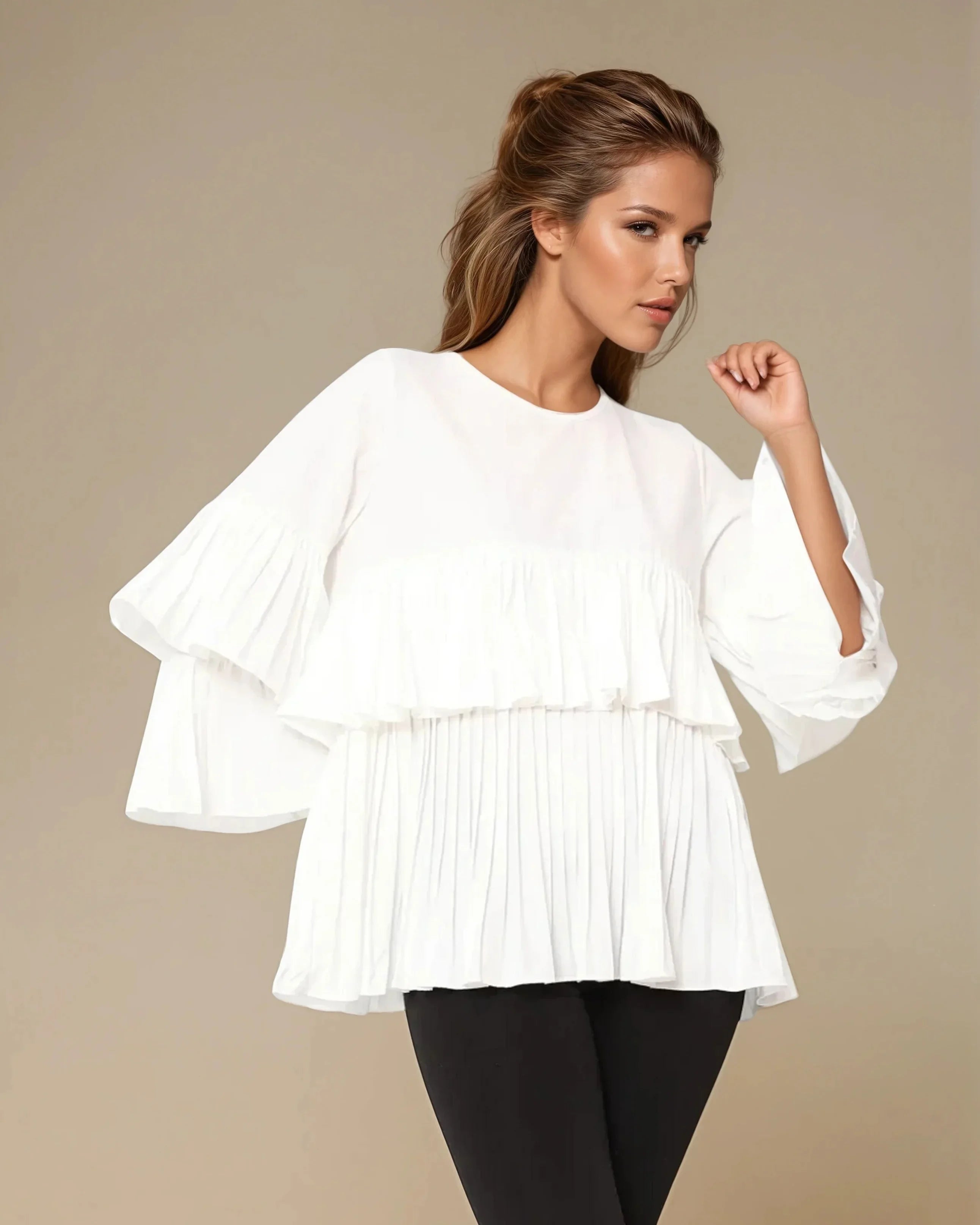 Plisset bluse - søde ruffles & seriøs stil (S/M & M/L)