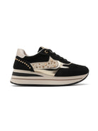 Disse sneakers har en moderne platformssål, der giver både højde og stabilitet, og overdelen er en blanding af tekstil, imiteret ruskind og metallic for et eksklusivt look. Med deres bløde interiør og polstrede sål er de lige så behagelige at gå i, som de er stilfulde at have på.