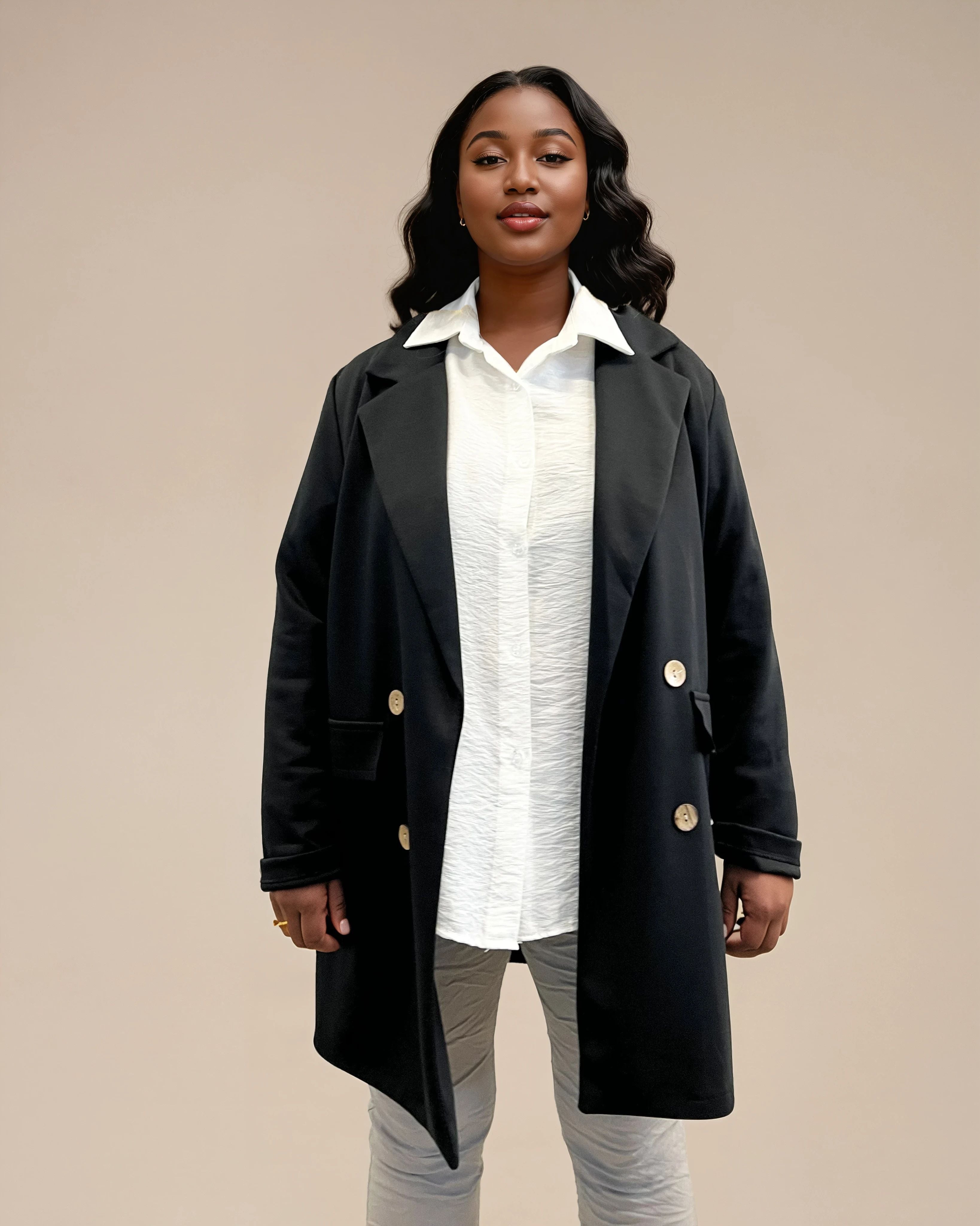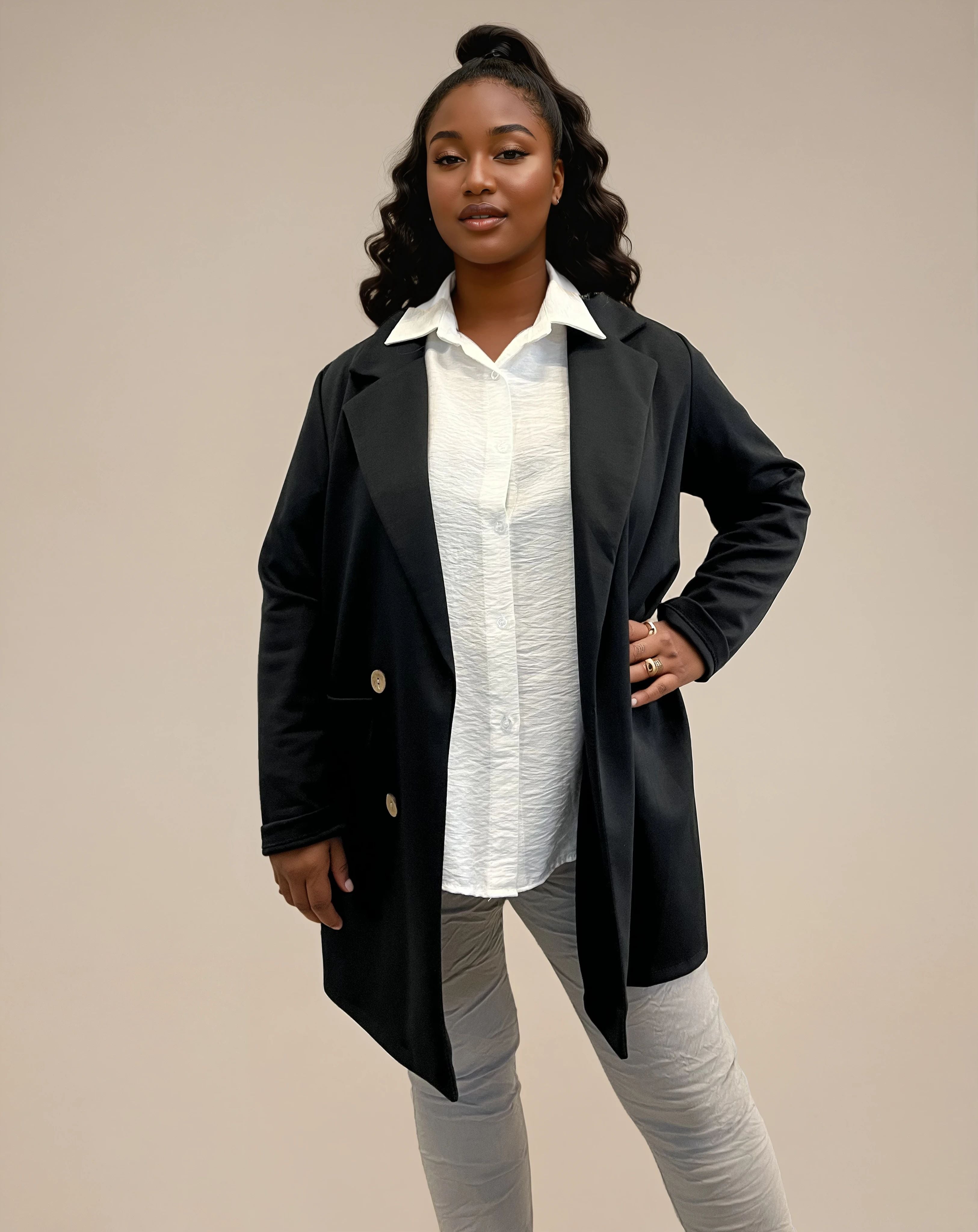Jacke Tyra Lång ist eine elegante und zeitlose Jacke mit klassischen Strichen und Doppelschnapper vorne. Es verfügt über dekorative Knöpfe und Taschendetails, die einen raffinierten Look bieten, perfekt für alltägliche und festere Anlässe.