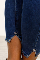 Diese Knöchellange Röhrenjeans mit Strassdetails ist eine stilvolle Wahl für alle, die klassischen Denim mit eleganten und trendigen Features kombinieren möchten. Die figurbetonte Passform folgt der Körperform auf schmeichelhafte Weise und kreiert eine feminine Silhouette, die sowohl für den Alltag als auch für elegantere Anlässe perfekt ist.