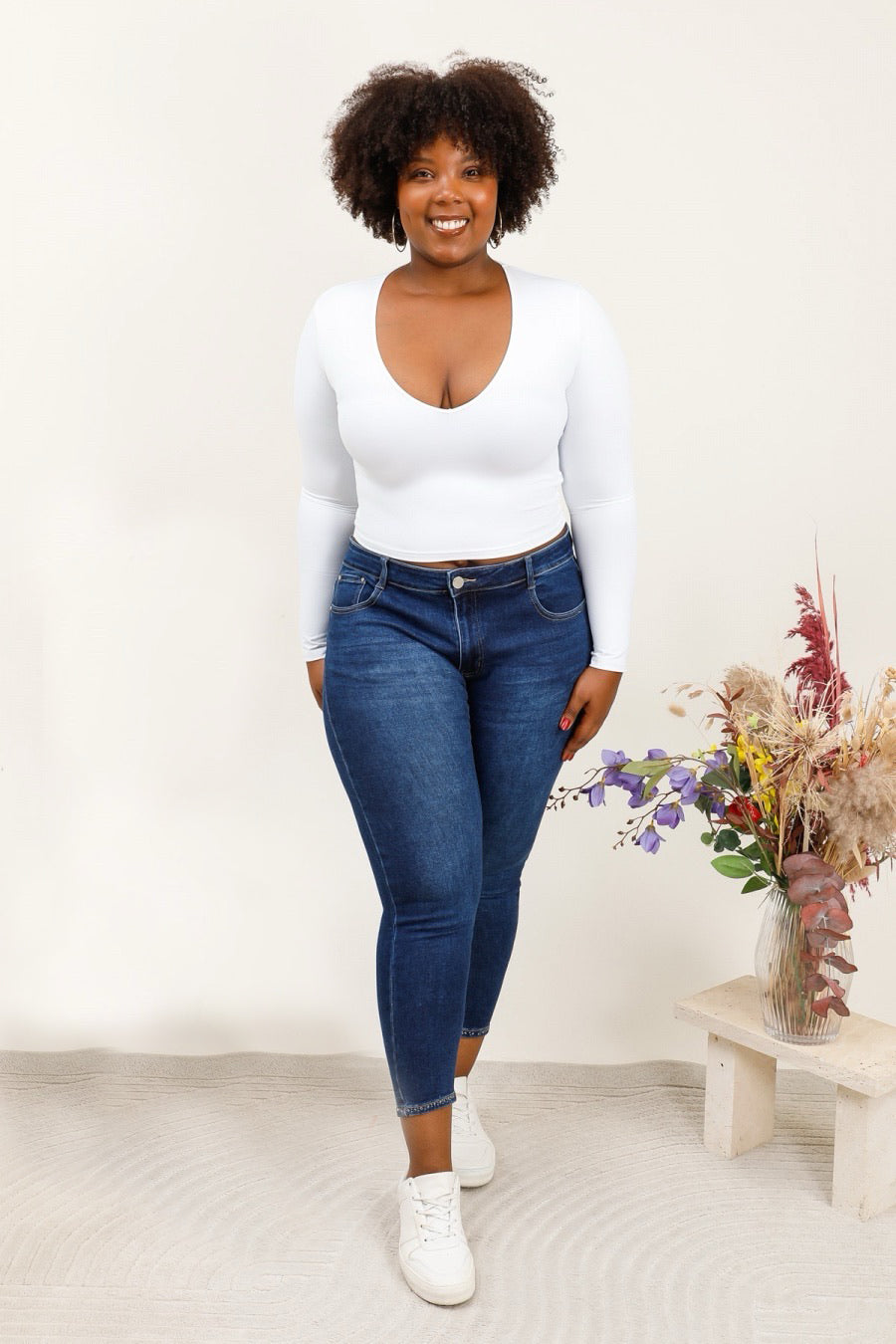 Die dunkelblaue Waschung vermittelt einen zeitlosen Eindruck und macht die Jeans sowohl zu hellen als auch zu dunklen Kleidungsstücken gut kombinierbar. Kombinieren Sie sie mit einem schlichten Oberteil für einen lässigen Look oder mit einer Bluse und High Heels, wenn Sie ein eleganteres Outfit kreieren möchten. Eine perfekte Wahl für alle, die Jeans wollen, die auffallen – ohne zu viel zu sein.