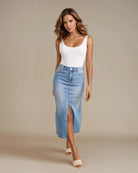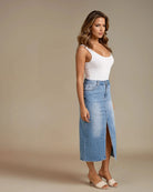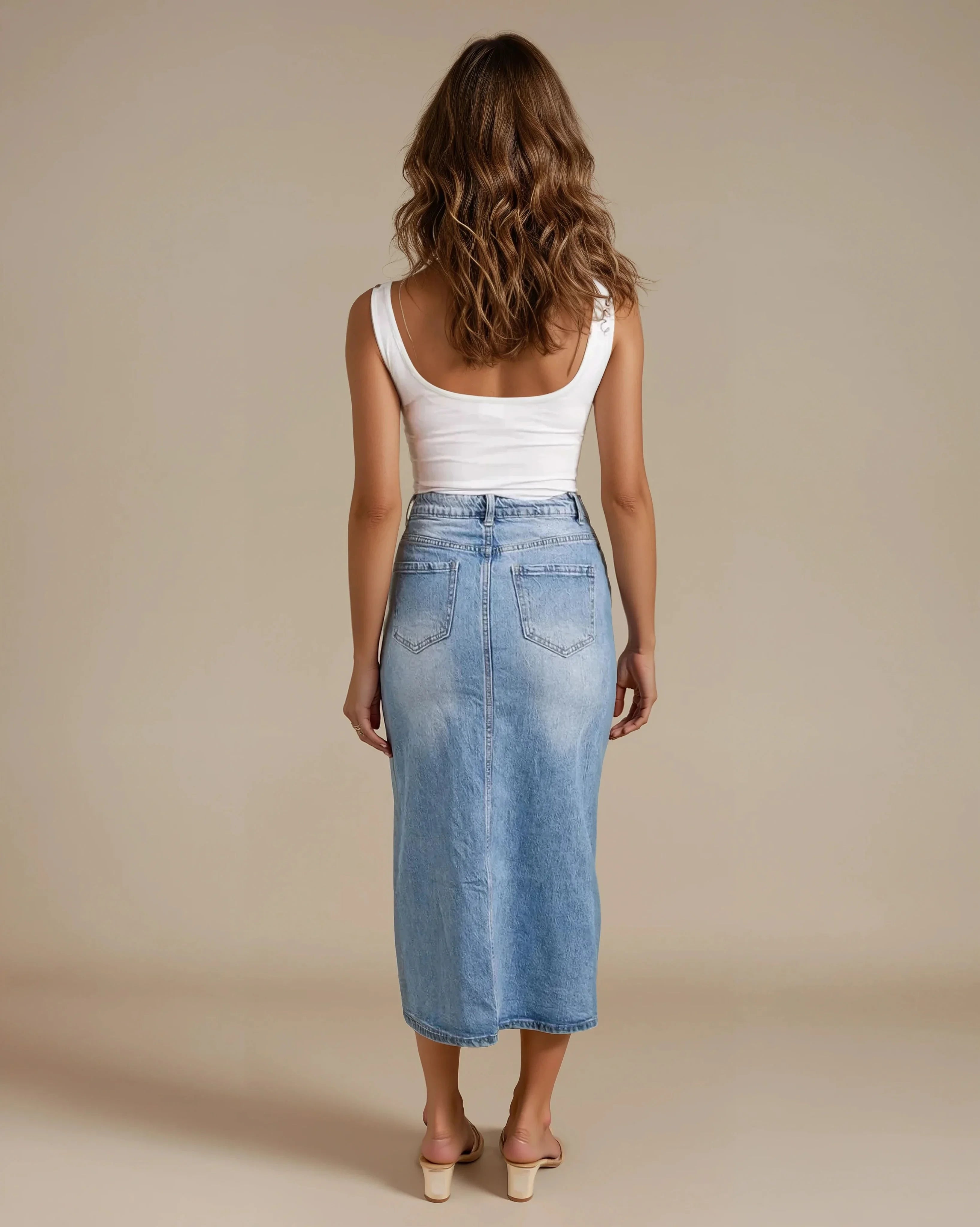 👖 Redberry -Jeansrock mit Schlitz - Midi, aber niemals mittelmäßig
