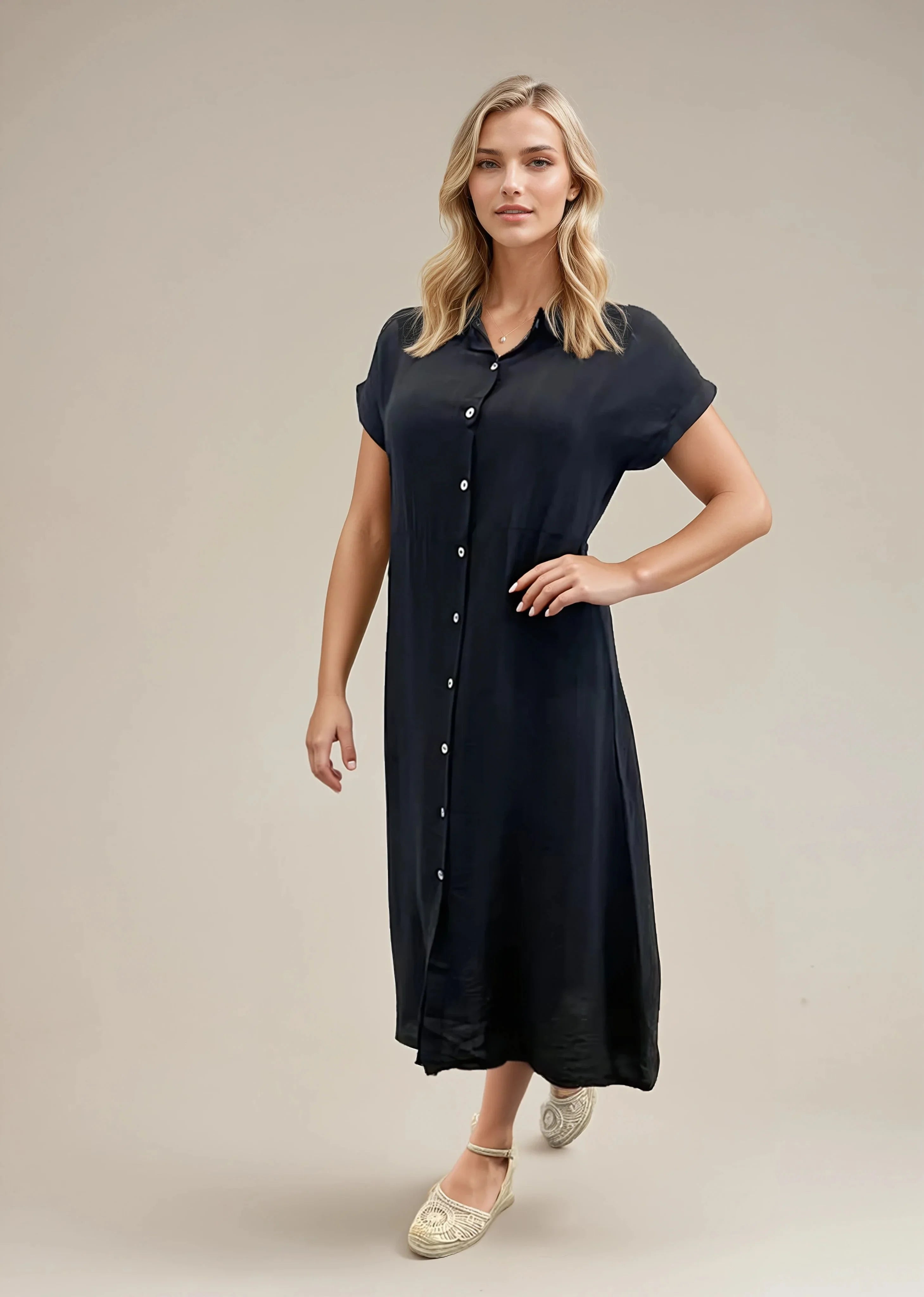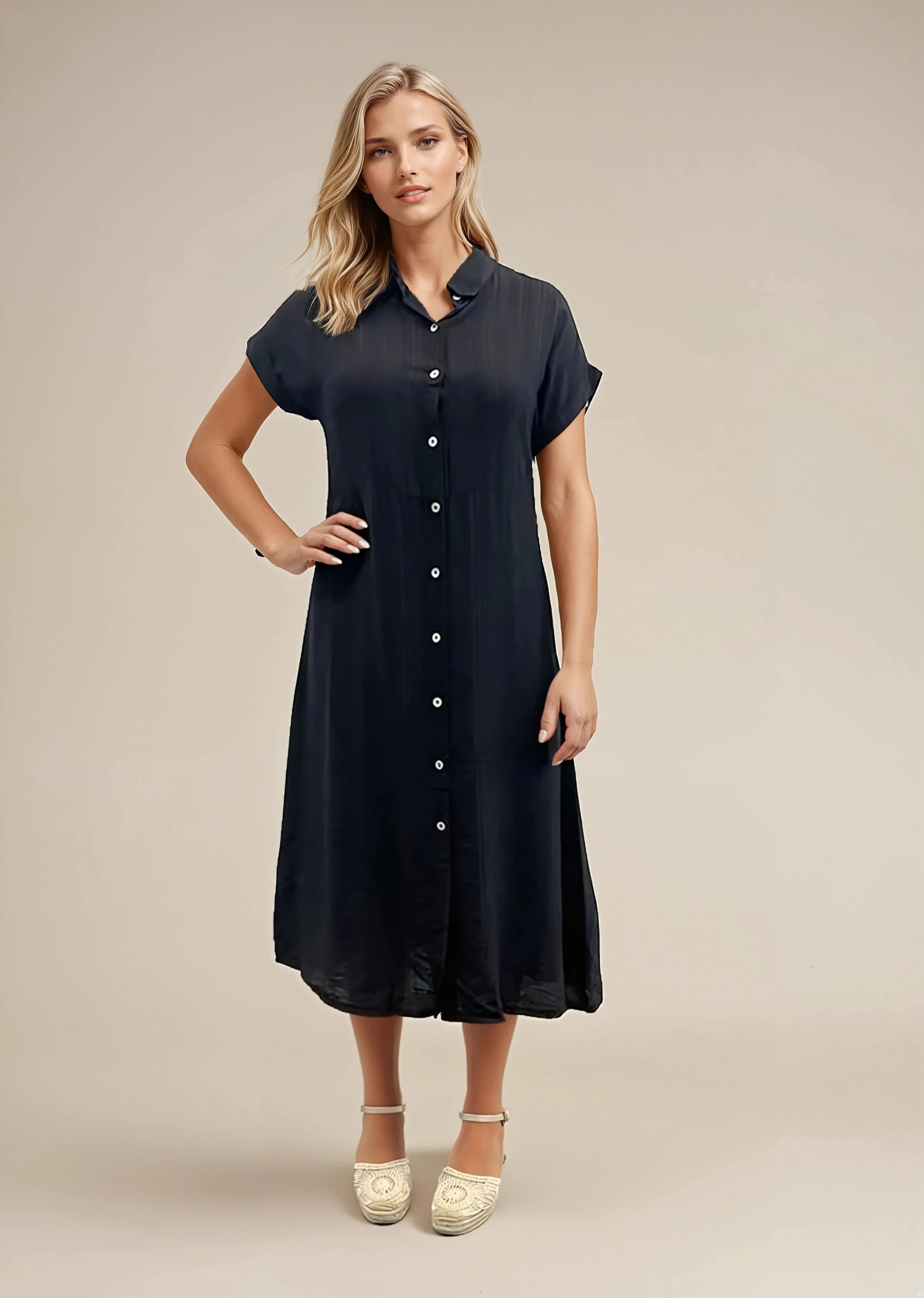 Lassen Sie Linda von Mirelle Design zu Ihrem neuen Lieblings-ein-stilvollen und luftigen Kleid in leichter A-Line-Form mit Knöpfen und klassischem Kragen vorne werden. Die Qualität der weichen Viskose verleiht ein wunderschöner Gehäuse und sieht es gut aus und sieht gut aus.