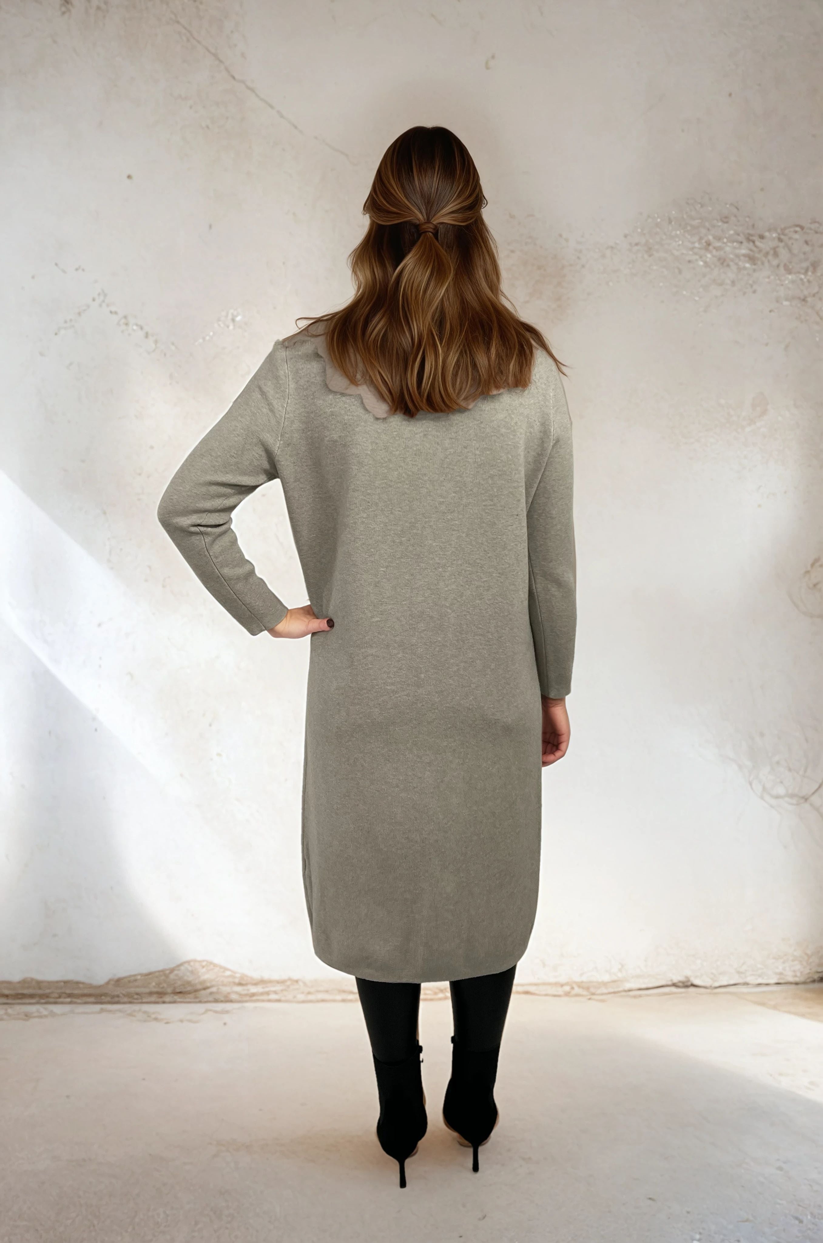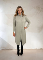 Fanny ist ein stilvolles und bequemes Feinstrick-Polokleid mit einem eleganten Wickeldetail vorne. Es hat einen weichen Polokragen und eine gerade, etwas längere Passform, die einen raffinierten Ausdruck verleiht – perfekt für den Alltag und Partys.
