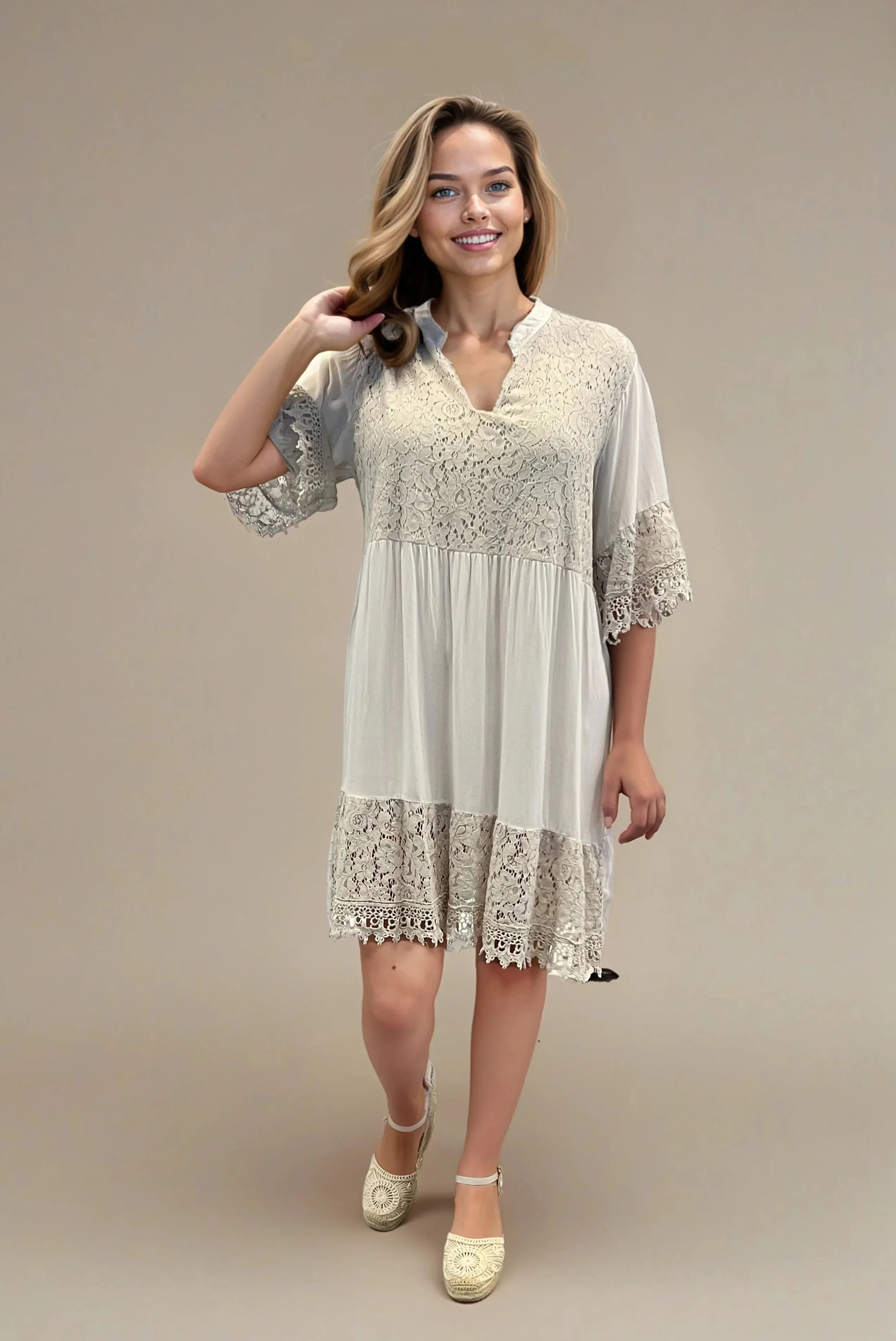 Elegant, romantisch und komfortabel - Tunika Sofia ist das perfekte Kleidungsstück für diejenigen, die Spitzendetails und eine luftige Passform lieben.