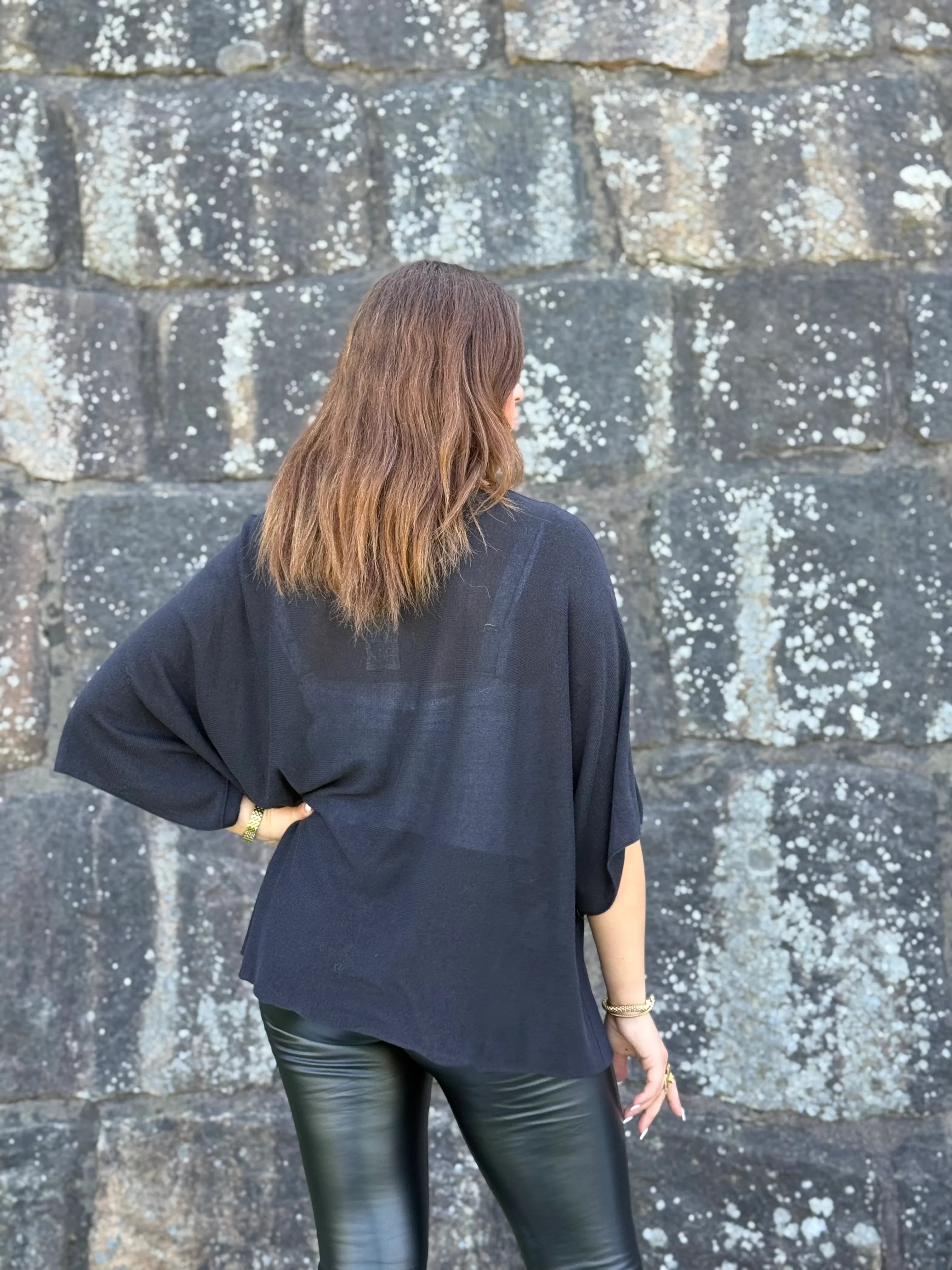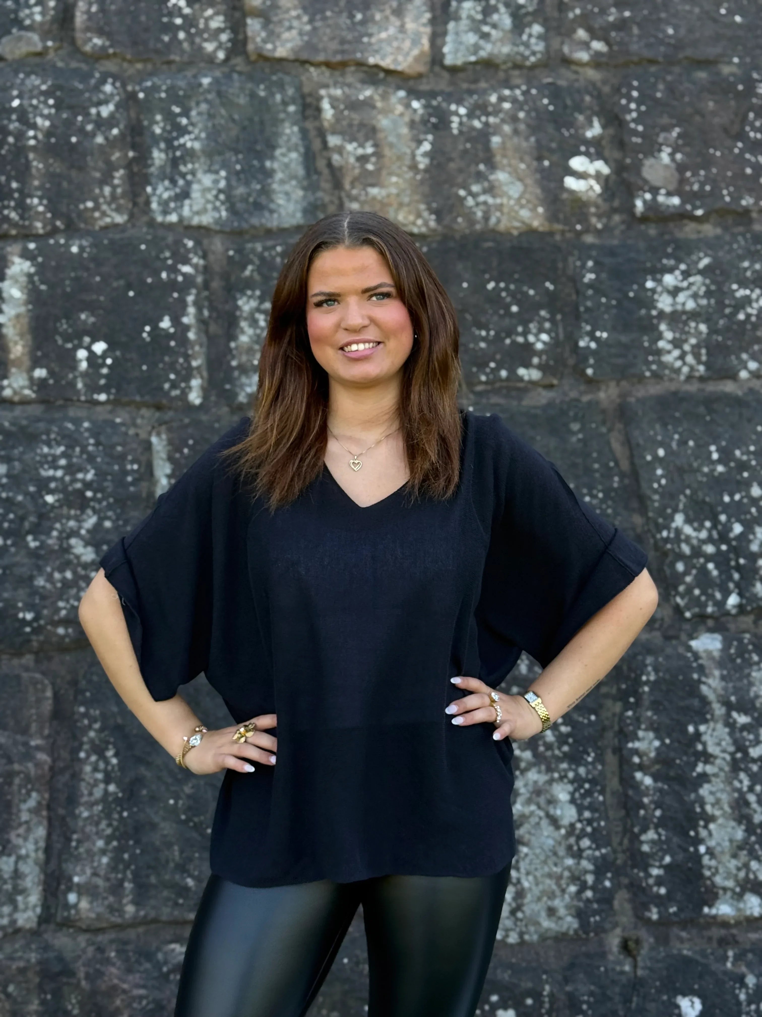 Den finstickade oversize-tröjan är den perfekta kombinationen av stil och komfort. Tröjan har en avslappnad passform med v-ringning, och de breda ärmarna ger en ledig och modern look. Perfekt att bära både till vardags eller som en stilfull lager-på-lager-look.